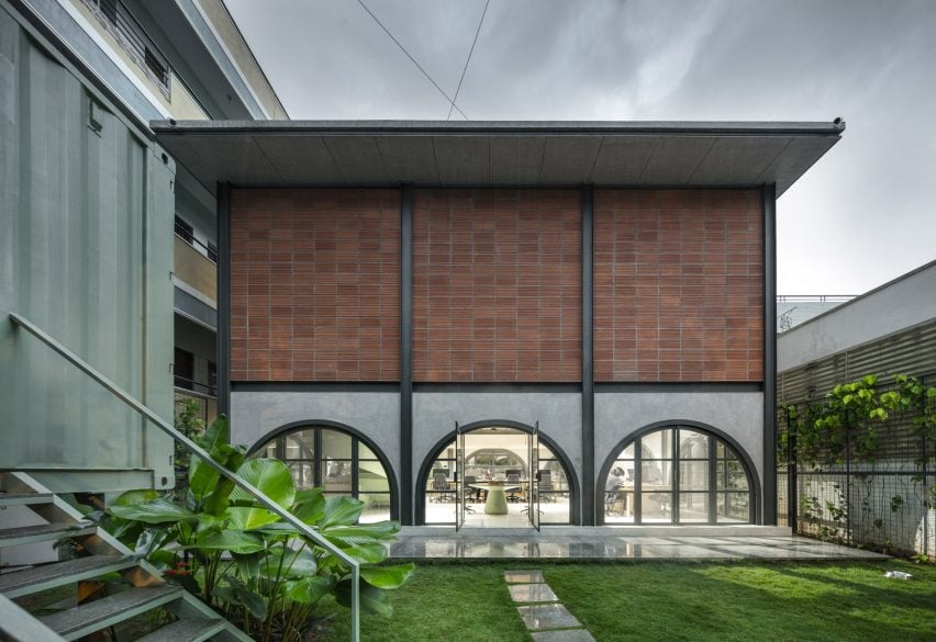 办公空间位于班加罗尔南部,分布在两栋建筑中——一栋两层的工作室和一个改装集装箱材料库。为了体现其作为一个工作室的价值观,塔利耶森建筑工作室专注于将材料暴露在办公室和未完成的地方,同时创造鼓励合作和创造力的空间。