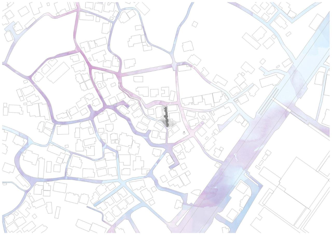 住户可以坐在光线柔和的小地方,旁边是高处邻近地块的挡土墙;也可以在开阔地上用餐,远处是低处邻近地块的围墙。我们认为,通过设计土地调整所造成的不同的、分散的特征与邻近地块扭曲的边界之间的关系,该地块应该肯定所有这些特征,并以这样一种方式进行建设,使它们成为居民生活的一部分。