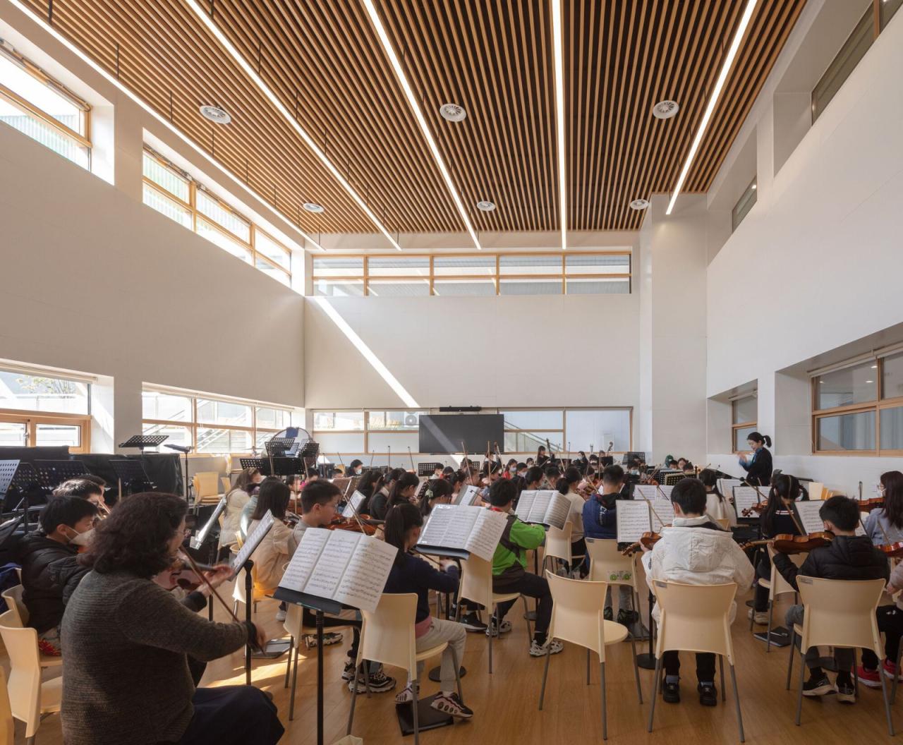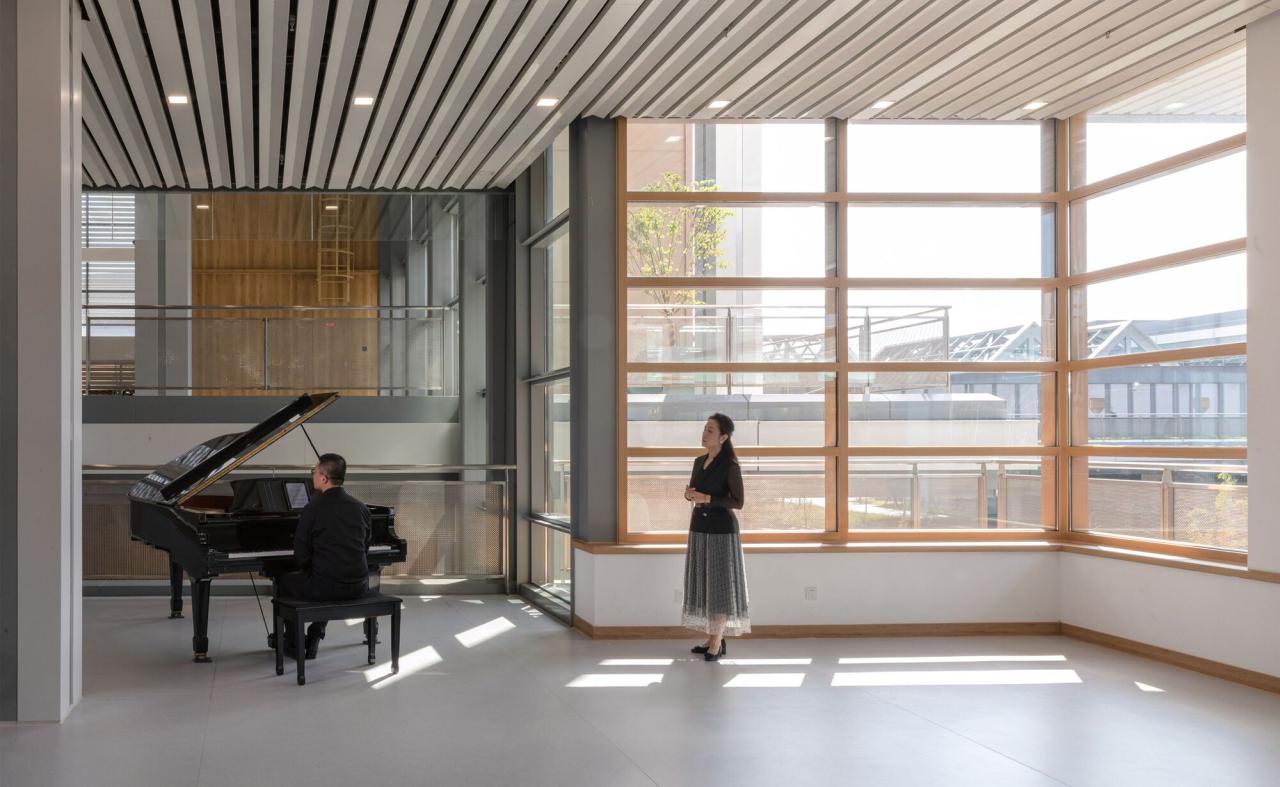 走向新聚落无论就规模或功能而言,浦东新区青少年活动中心和群众艺术馆都是一座大型的复合式公共建筑,使这次设计实践为探索新型公共建筑类型提供了一次宝贵的机会。在这里,山水秀用交互平台的方式营造了一座都市里的立体村庄聚落。 我们认为,在当代和未来的社会生活中,城市居民仍然需要公共的实体活动空间,以满足线下交流、分享传播和兴趣拓展的需求。与此同时,公共建筑也需要不断更新,用新的生命力适应新时代的变化。为此,我们提出“走向新聚落”的三个设计理念:一、共享减量:鼓励近似功能的空间合并和分时共享,通过减少建筑规模总量来降低建设碳排放和运行能耗;二、有机交互:为使用空间创造舒适的、能够与环境互动的室内外场所,激发人与自然,以及不同人群之间的流通与交互,营造有机的聚落体验;三、聚落建构:通过构造将结构、设备与空间、材质高度整合,将建构的领域从建筑本体拓展到聚落环境。