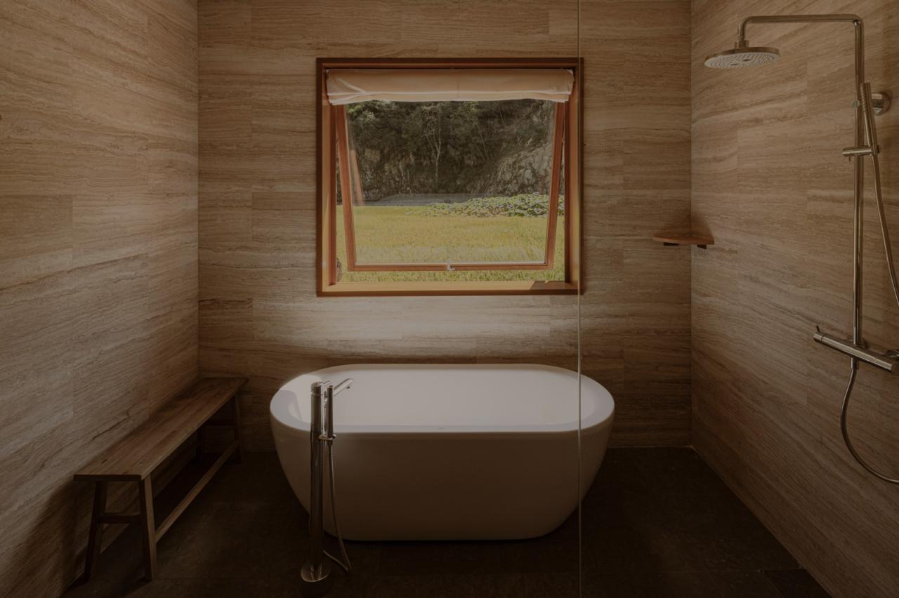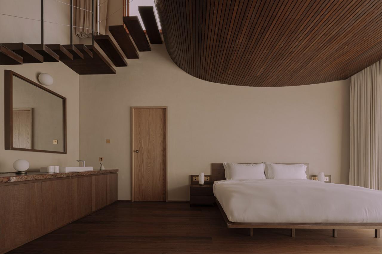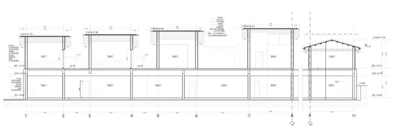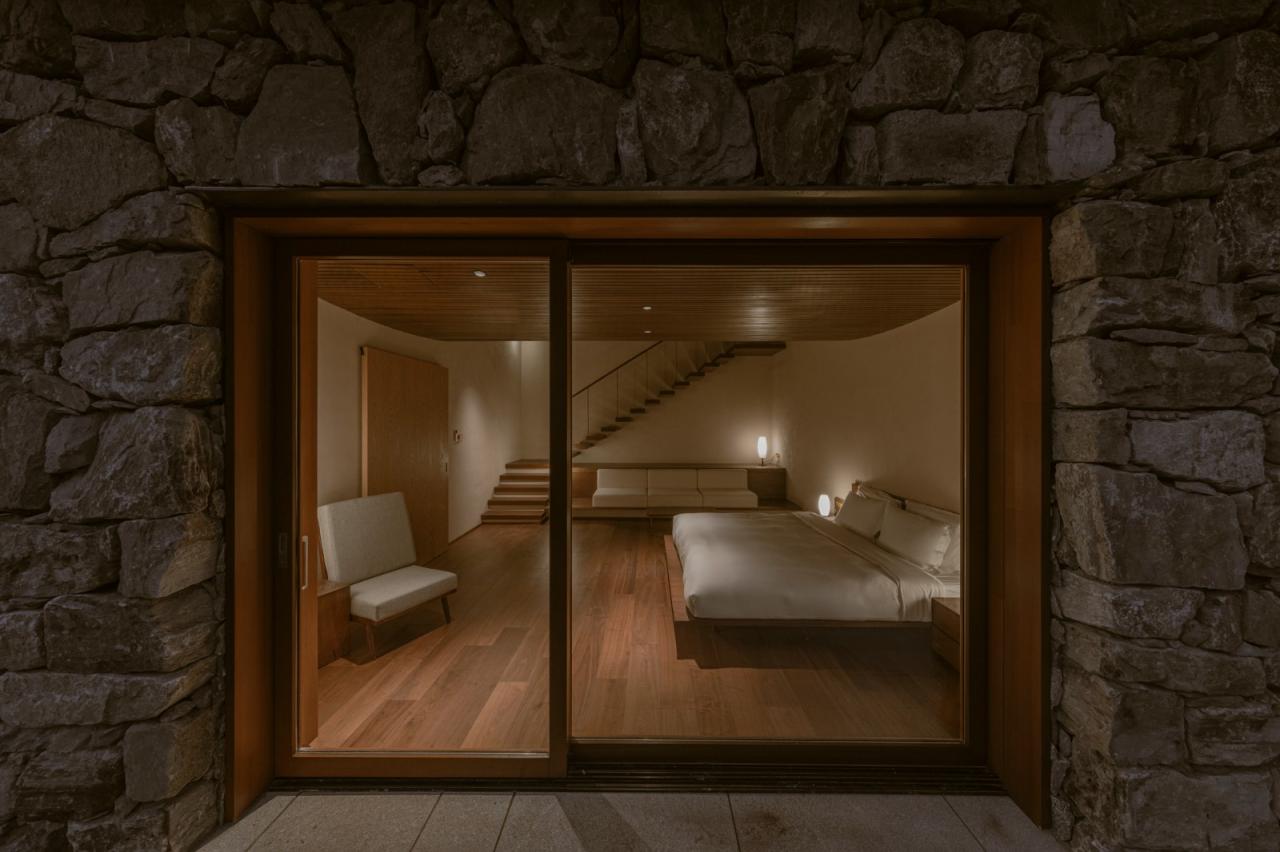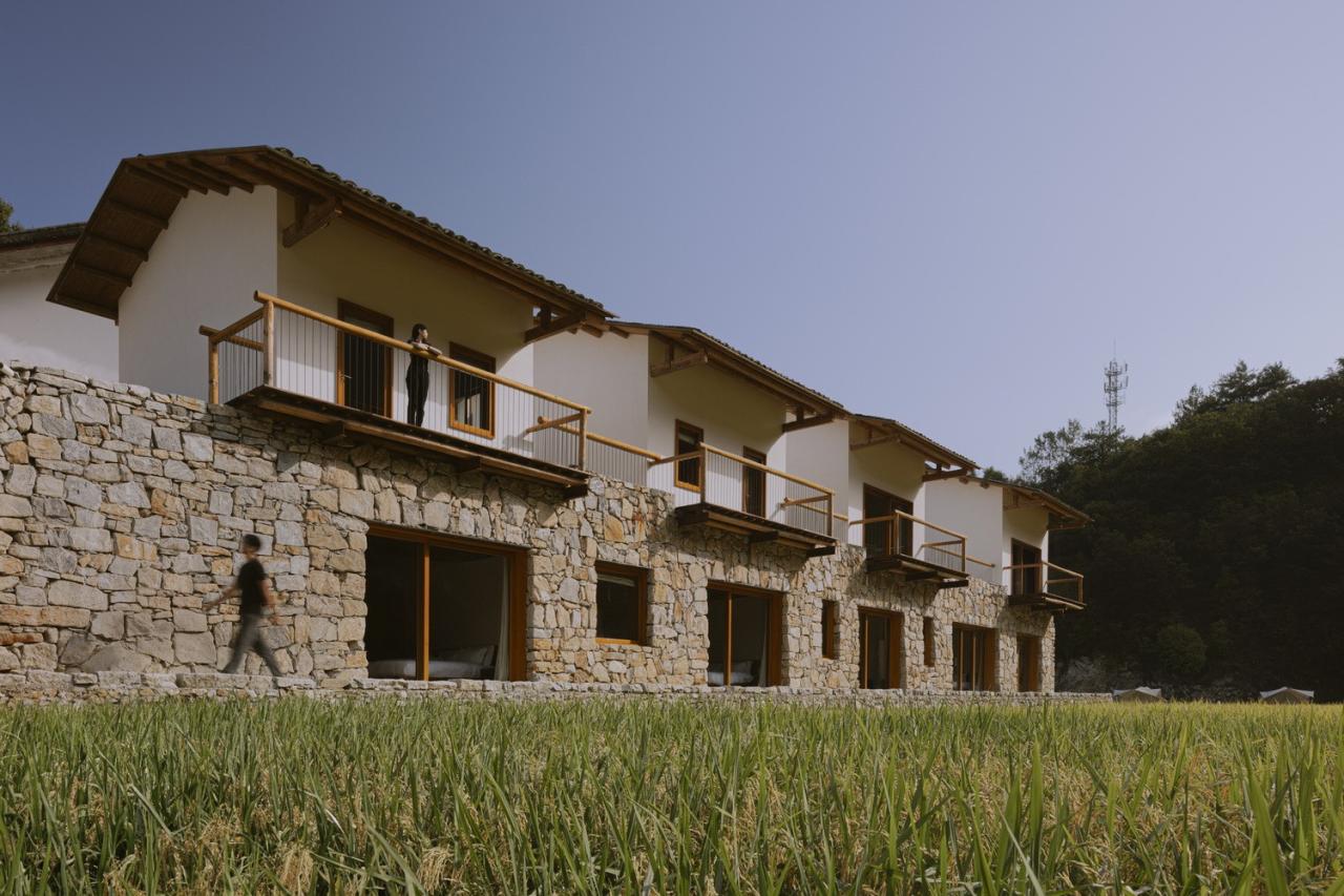 此外,客房内部,卧室等私密性要求较高的功能,设置在由石墙包裹内的一层,同时面向梯田。让客人享受舒适入住的同时,还能体验到丰富的外部环境。