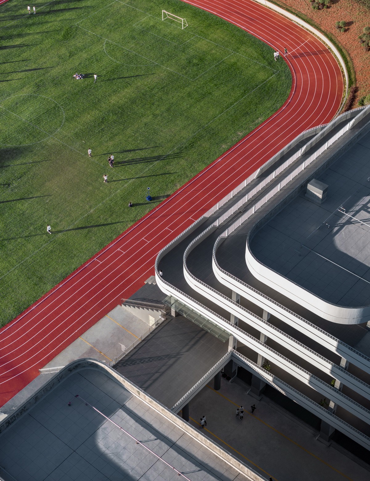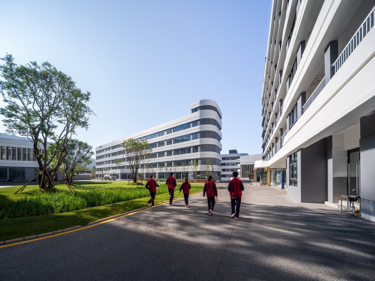 因成本的严格控制,校园的建设运用简化元素的设计手法,避免复杂的细节和装饰,使空间更加简洁、明朗。而简单不代表枯燥,我们最擅长因循地形,建筑逐级上升、逐层退缩,滑动的盒子、层叠的几何,校园展现出更加丰富灵动的场域情境。这带来的是随处可见的露台,也是学生最喜爱的休闲、运动、读书、眺望的空间。
