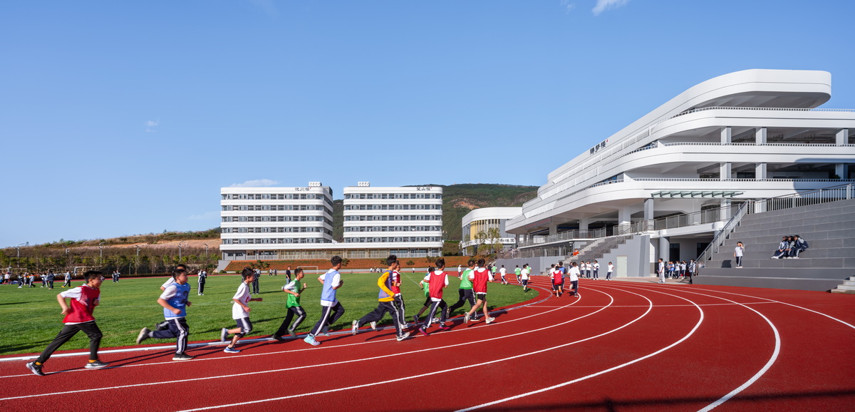 光影流转、云波缥缈,全新的校园以设计为依托,赋予了学生和老师更多教学体验的可能性;望山揽云、眺望未来,弘玉中学结合玉溪的青山绿水打造生态自然的绿色学习环境,营造师生交流的学习休闲的丰富空间,融入周边城市;为社交互动提供有意义和积极的生活,开发学生们的潜能,建立他们积极的自我形象,为今后进入社会、面向未来打下坚实的基础。