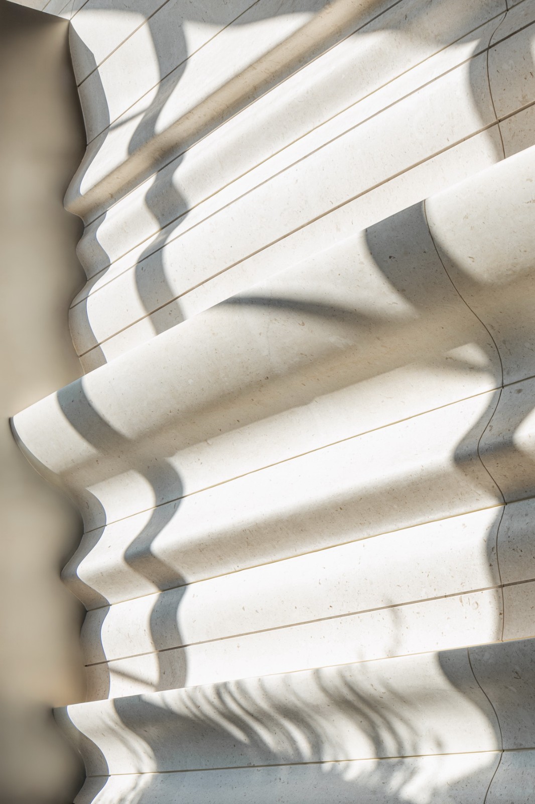 作为巨浪的漩涡最后是用五轴机床立体雕刻大理石然后拼装形成。它的确创造了一种巴洛克的视觉,大理石以固体却表达出了一种动态流体的力量。