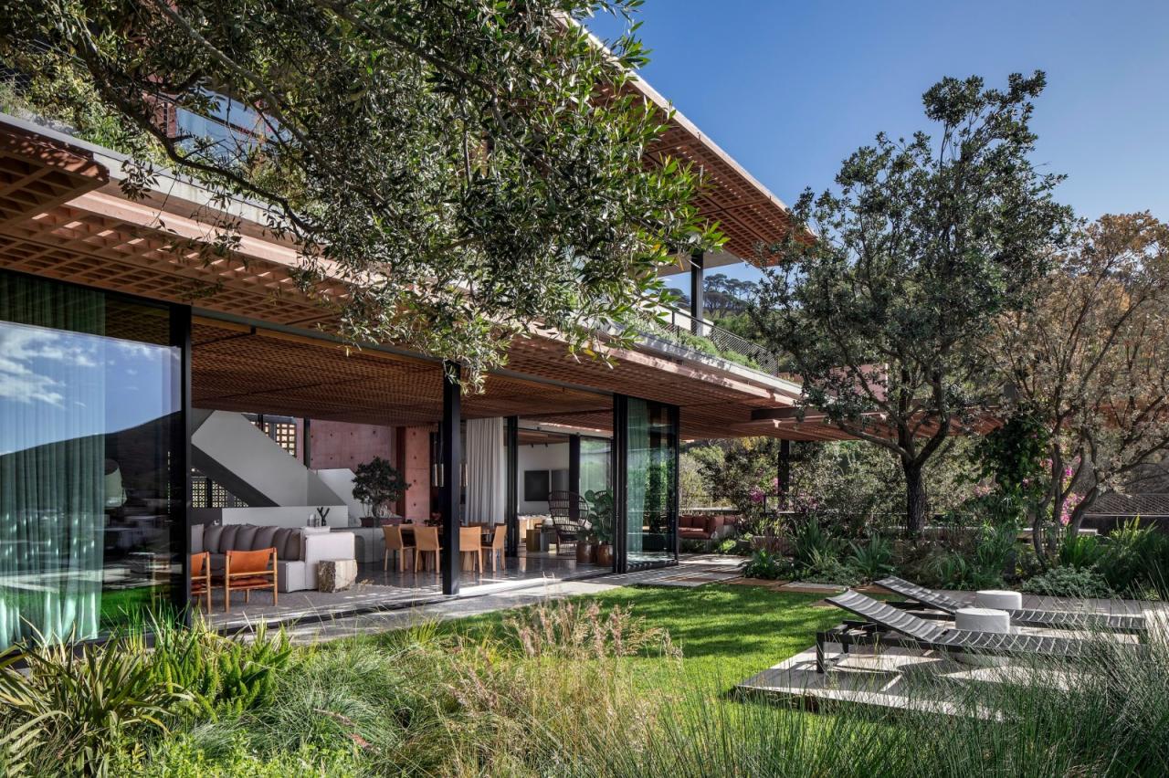 他争取到的这块街角地块地势陡峭,在一个大花园中央有一座 60 年代的牧场式房屋,“令人难以忘怀”,这也是那个时代花园式郊区的典型特征。但菲利普指出,开普敦市在这一地区实施的密集化战略带来了新的可能性。为此,他沿着一条等高线将这块地进行了细分。他将其重新开发,在上部建造了一栋拥有五间卧室的家庭住宅,在下部建造了两栋拥有四间卧室的出租公寓。菲利普说:“我们的目标是建造一栋独栋住宅,享受城市的活动和活力。”与此同时,他还试图在变化的城市环境中重现花园郊区独立住宅的精神。