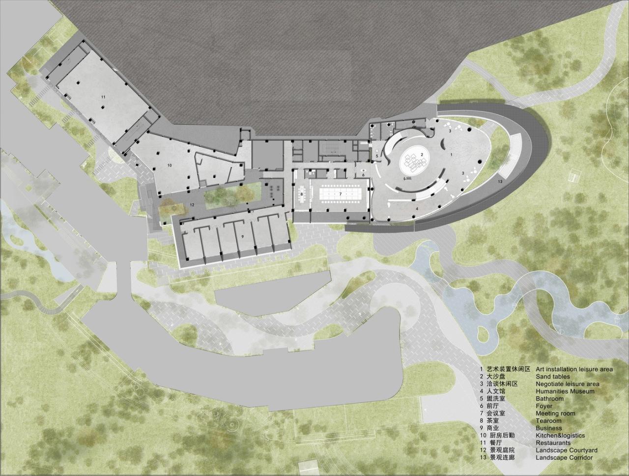 此种途径超越了地形模仿,与地形建筑理论紧密联系。内部空间连续性与分层性共存,通过地形曲面变化定义功能区域和流线。设计旨在引导游客运动,提供开放向量场域,激发探索欲望。起伏屋面创造丰富视觉和触觉体验,观景平台和曲面翻转提供多样视角和视窗。