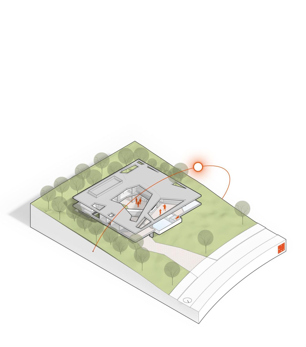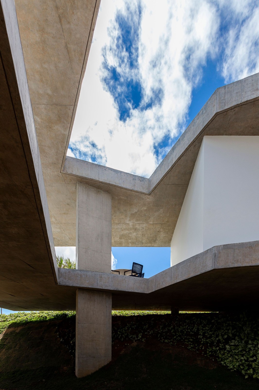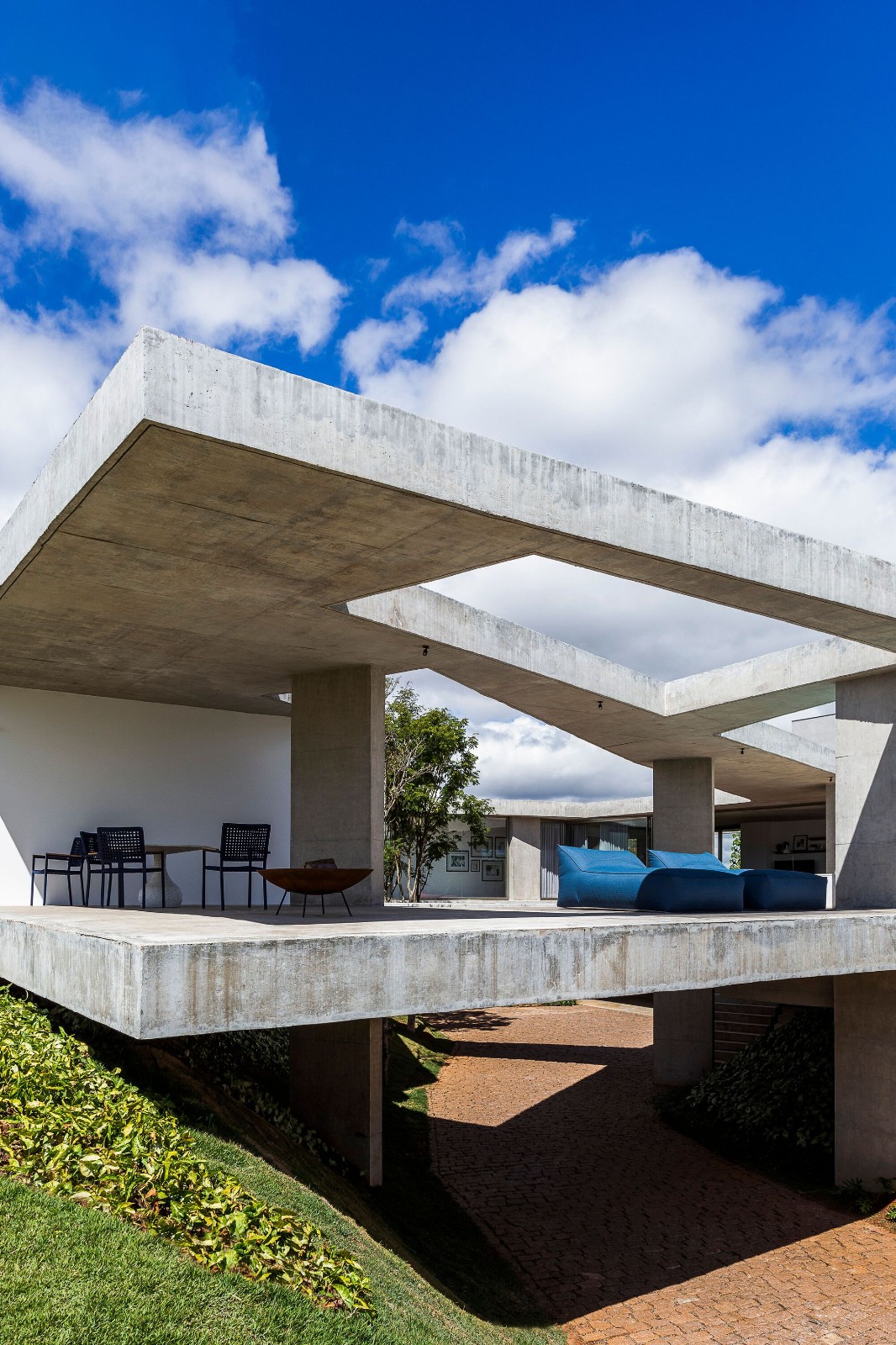 在处理该项目时,建筑师们决定挑战其作品中的主流逻辑,即他们所来自的圣保罗学派,将结构概念视为空间的创造者。因此,他们选择了一种 FGMF 作品中少见的策略:从两个高架裸露混凝土平面的理论构思出发,占据整个可能的土地面积,并尊重后退和该地区的其他适用法规。根据这些尺寸,他们研究了房屋的各种占用示意图,包括社交区、私密区、休闲区和服务区,直到找到看起来最合适的组织方式。