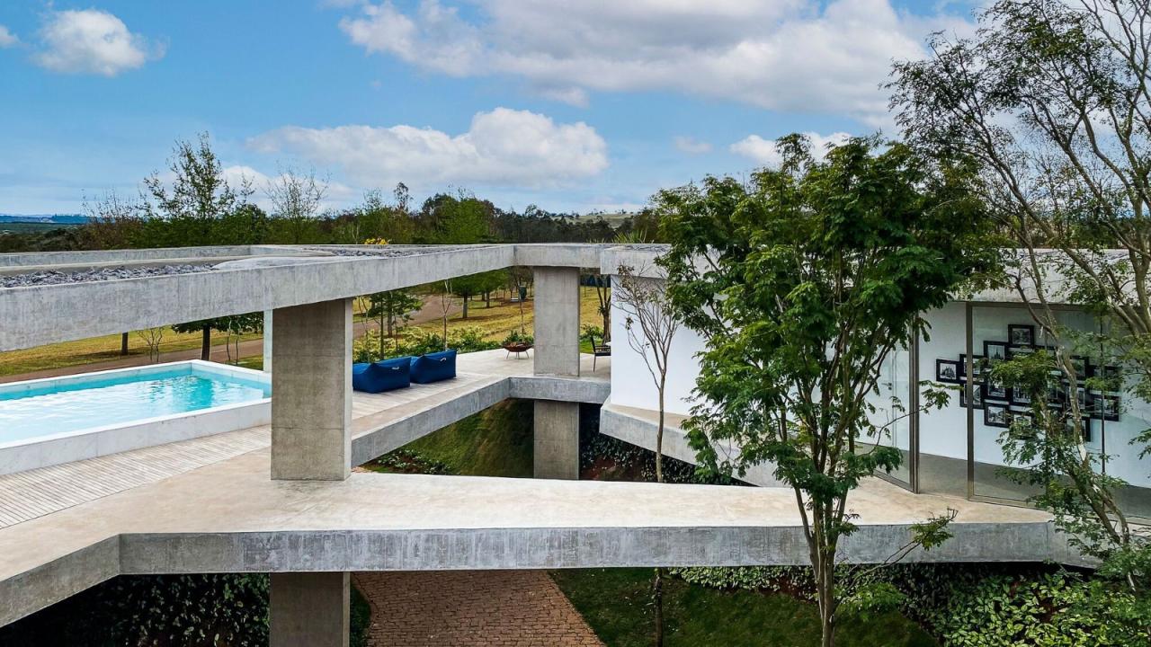 Casa Subtração 位于布拉干萨-保利斯塔(Bragança Paulista)的高端住宅区 Quinta da Baroneza,距离圣保罗市仅 90 公里。该住宅是为一对夫妇和他们十几岁的儿子设计的,战略性地坐落在一块方形土地上,充分利用了略微倾斜的地形,并提供了开阔的视野。FGMF 建筑师出于保护视觉效果的考虑,决定挖掘中心区域的地面,从而在地面上建造了一个带有照明庭院、车库和花园的地下空间,将房屋抬高到地面。