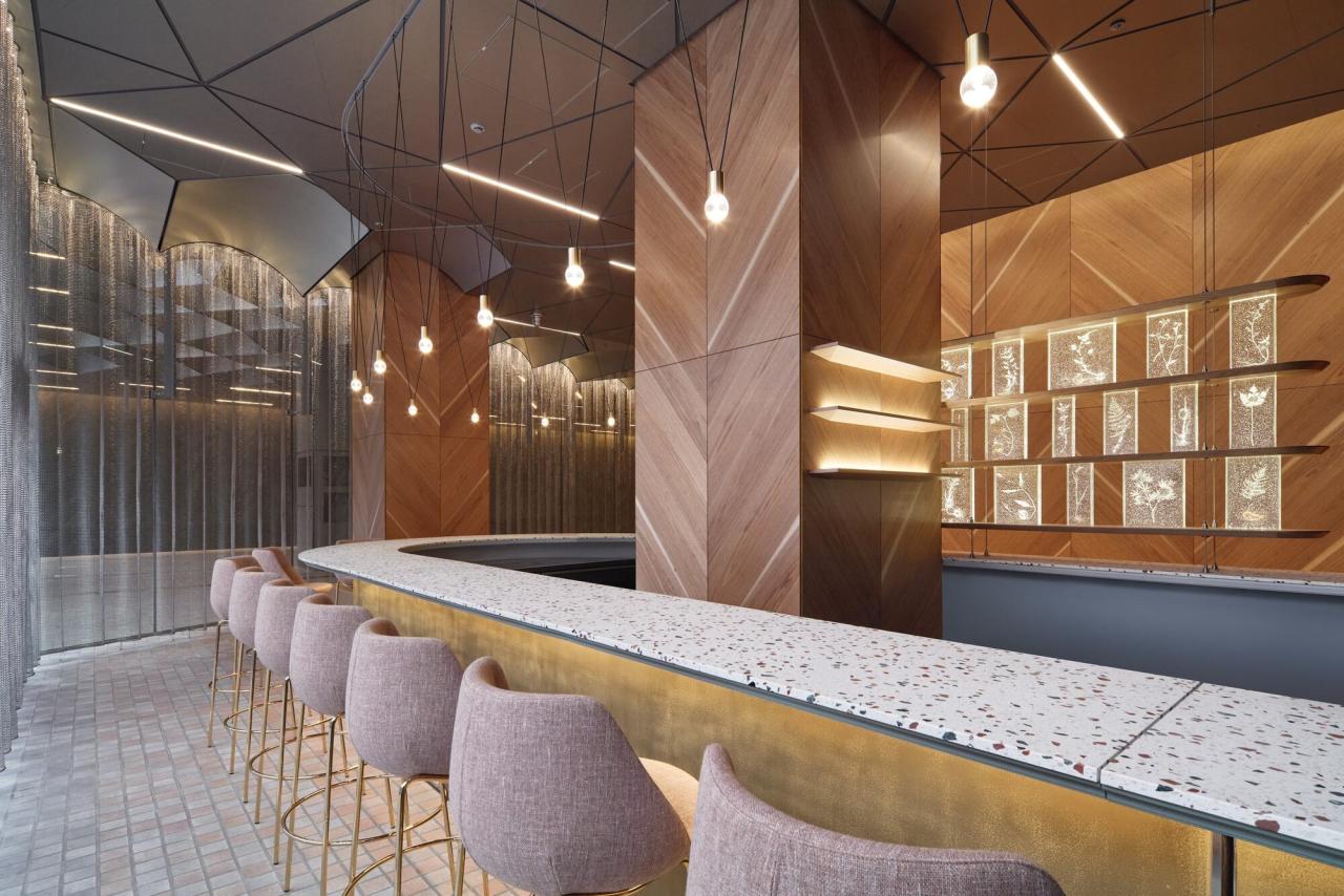 我们在该建筑室内设计方面的工作包括一楼通道、入口、东京 Bellustar 酒店一楼休息室以及米兰-扎剧院的门厅和酒吧(该剧院位于六至九层)。通道的天花板设计成波浪起伏的样子,休息室的窗户给人一种水流穿过链条围栏的感觉。剧院门厅的墙壁由管状铝片制成;这里的设计也让人联想到喷泉,为剧院观众创造了一个远离尘嚣的环境。室内设计还包括与不同艺术家合作的艺术作品;休息室里的装饰品、墙壁上的绘画和照片以及门厅地板上的原创作品,都让整个空间栩栩如生。