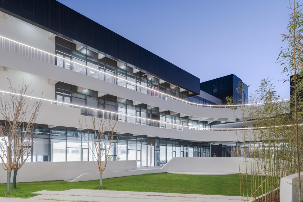 这个标志着工业4.0的亚太总部项目位于江苏无锡,占地300亩。项目中使用有机的、可持续的新技术材料,融合设计与绿色,致力于“碳中和”及自身在可持续发展中的社会责任。这些付出也得到了认可:2024年项目落成之初,便喜获国际绿色建筑LEED的金牌认证。