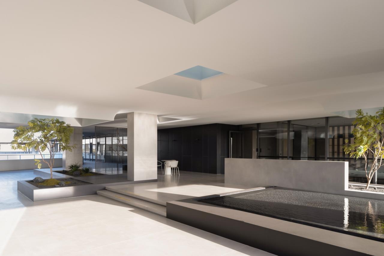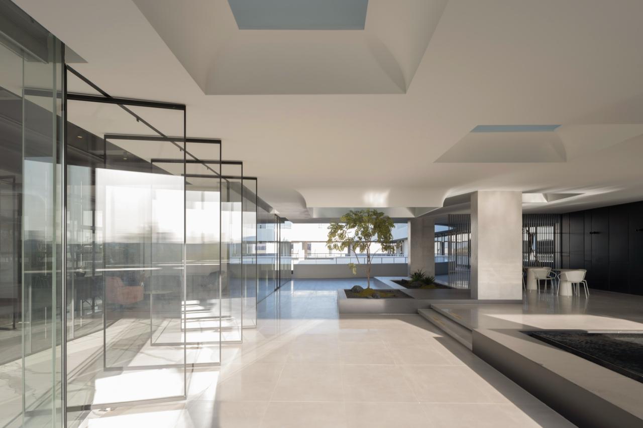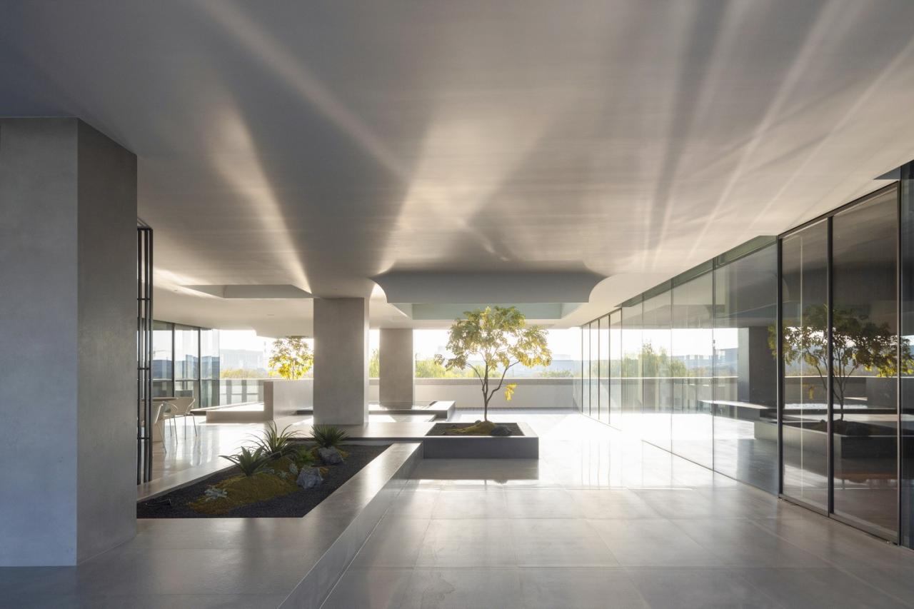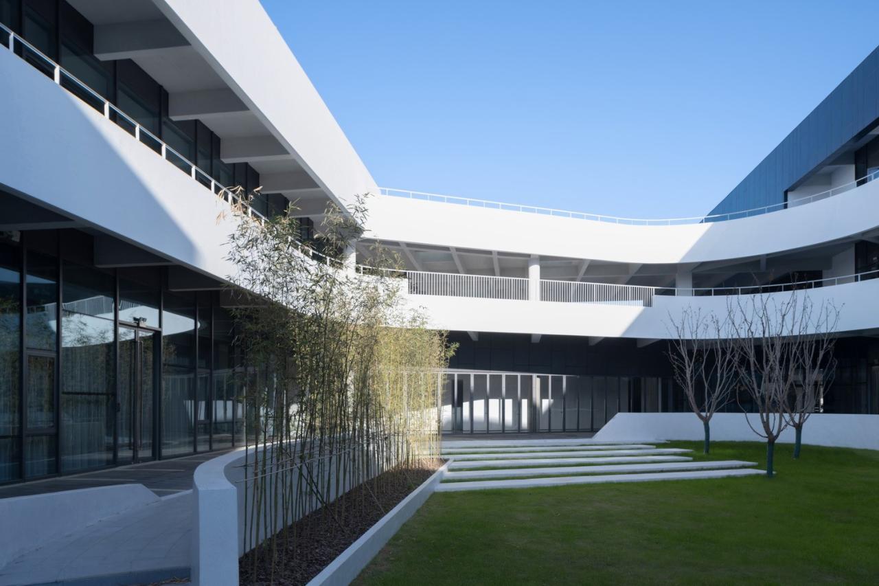 一楼的内部空间主要属性是公共的,包括主大厅、会议室、柏丽德禄的独立展厅、及与访客频繁互动的咖啡厅以员工空间。所有上述空间都可直接通往中央花园。二楼是管理办公空间和贵宾用餐及接待空间,这些空间相互贯穿,但又被一系列室外露台分隔开来。在这里,室内和室外空间的划分变得模糊起来。由于每个体量的尺寸较小,所有办公空间都能享受到自然光和交叉通风,营造出舒适节能的工作环境。三楼是研发中心,展示一些正在开发中的待发布产品。此外,三层还设有一个多功能阶梯式舞台,可举办演出、讲座、培训及其他集体活动。