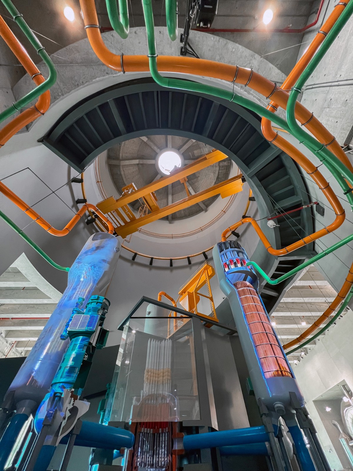 精神堡垒圆柱形的核岛模型,是项目的精神象征, 画龙点睛之笔。