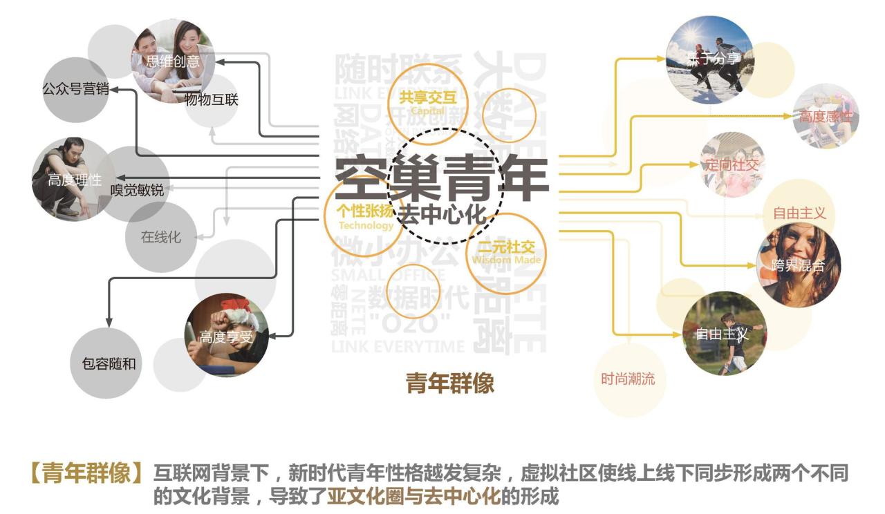 从0到1|定义功能业态客群洞察:亚文化圈层和去中心化调研中我们划定了项目的主要客群年龄在18-35岁,以大学毕业生为主,技校毕业生为辅的年轻人。这批年轻人成长在互联网的环境之下,兴趣爱好呈现出多元与分化的特征,在社交方面更倾向于结交与自己有相同志趣的社群。面对这样的客群特征,建筑也应考虑如何具备对应的空间属性,从而真正满足青年人的内在精神需求,形成社群的凝聚力,加强青年的认同感,进而也有助于增加北仑城市对年轻人才的黏性。