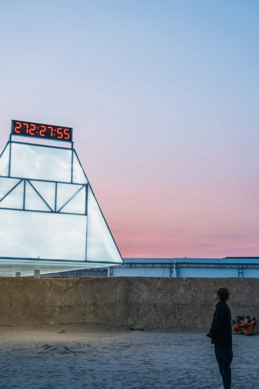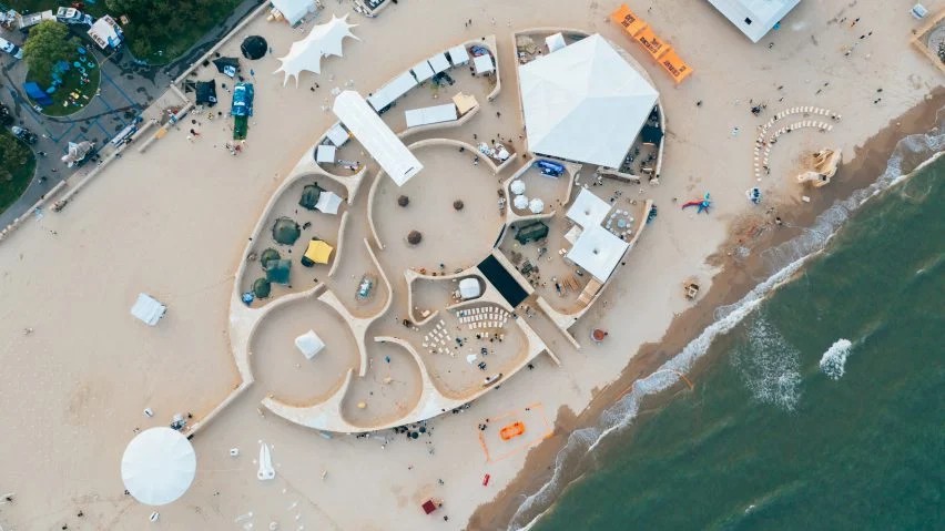 MAD创始人马岩松在中国北部的阿拉亚(Aranya)海滩上展示了时间之城(City of Time)的装置和活动空间。