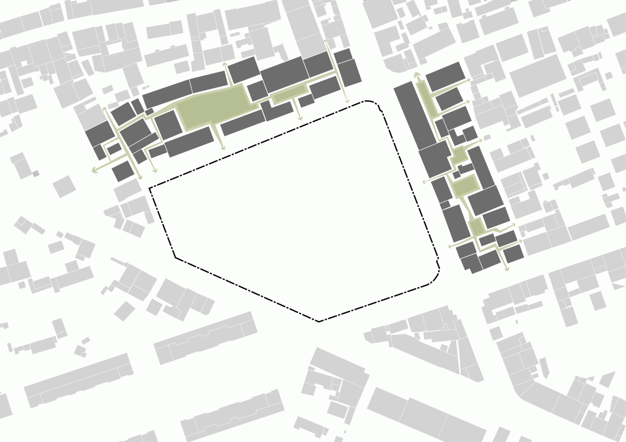小镇艺术中心的公共性不仅在于其开放的场所环境,更重要的是与小镇居民的日常生活直接关联,邀请居民成为空间的主体。因此,我们将作为小镇公共活动的重要载体——广场和街区原型纳入建筑设计,并通过三条路径得以实现。