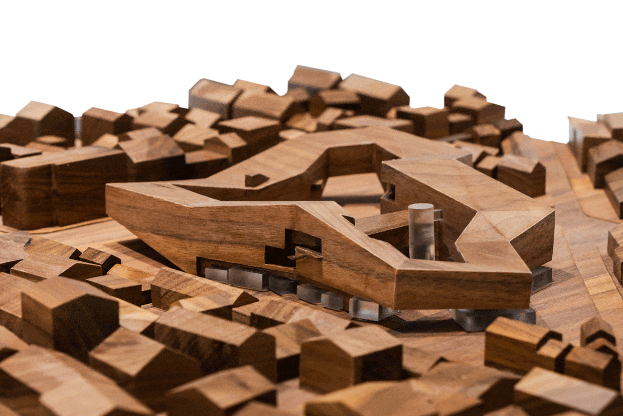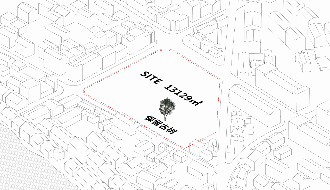 其一,朝向老街与小镇方向的三个街角,通过边界退让与角部抬升,形成三处较大尺度的街角广场与底层架空空间,引导街巷人群步入建筑。