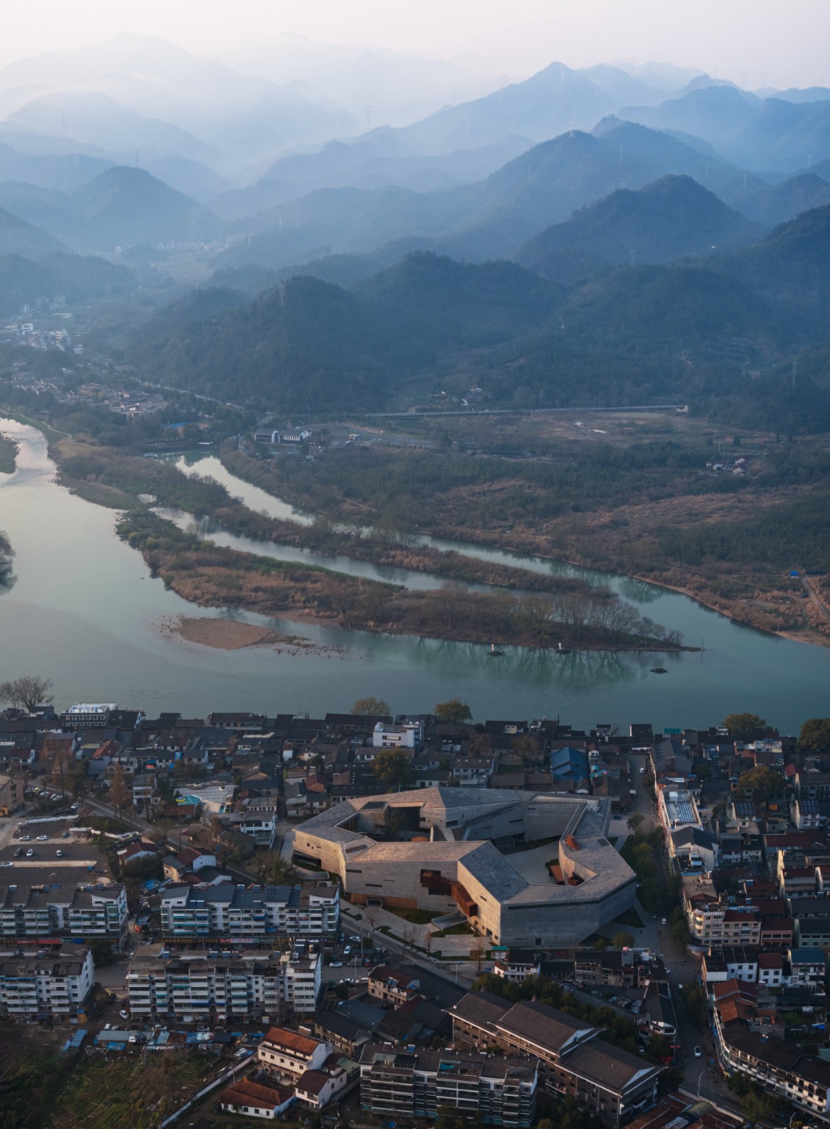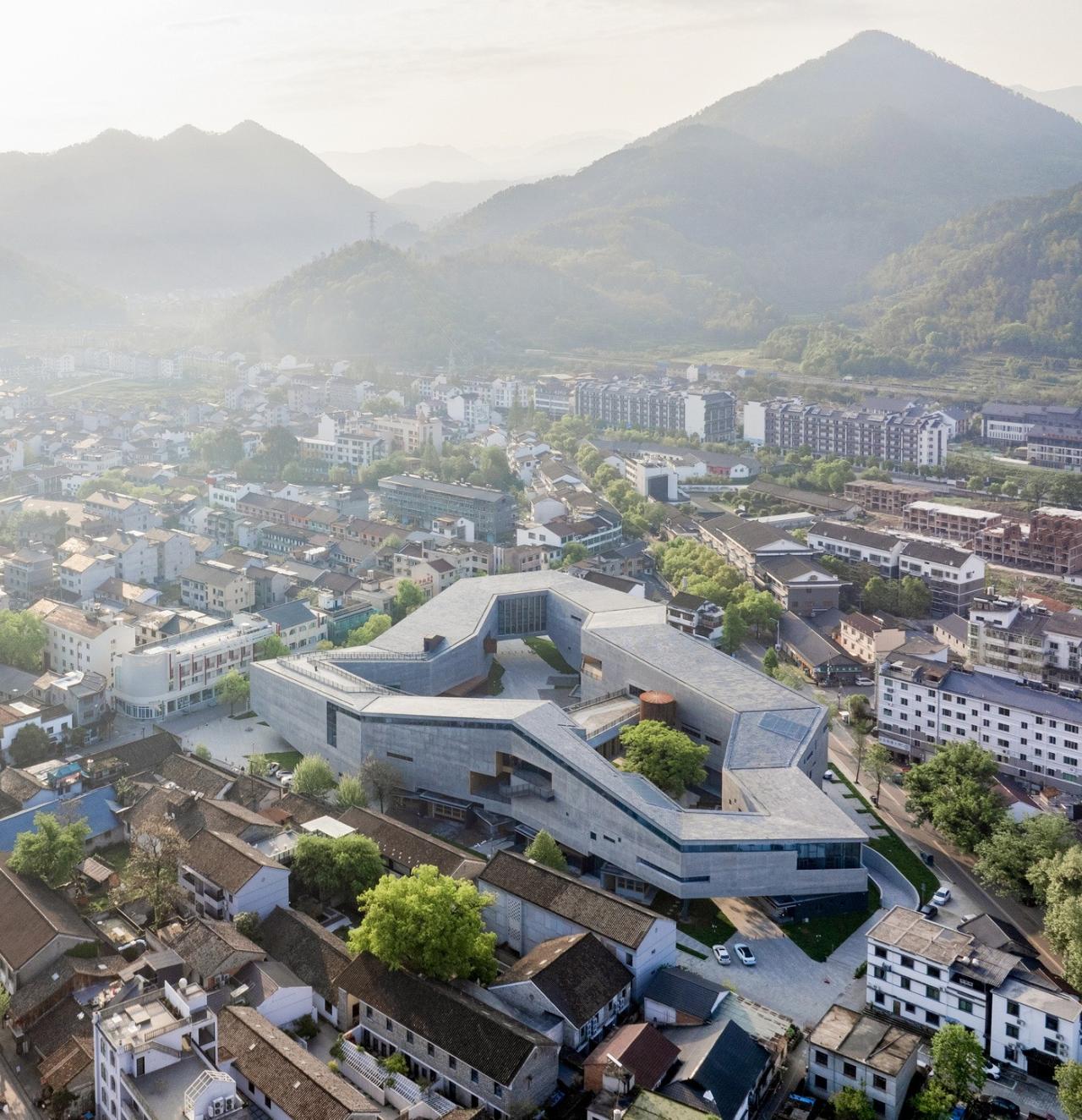 艺术中心坐落于高密度的老居民区中,与保留着传统聚落形态的古街近在咫尺,四周群山环绕,北面紧邻瓯江大溪段,充满原生态的市井烟火气。