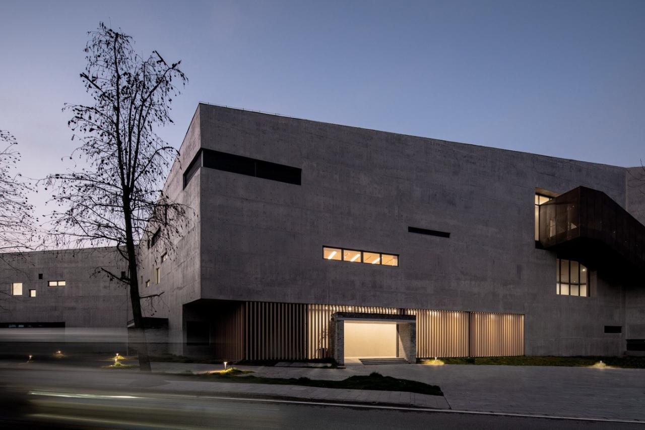 由于现浇混凝土将会导致建筑主体自重较重,对结构产生极大负担,进而影响到建筑的使用空间以及项目整体造价,因此我们放弃了现浇混凝土方案而改用装饰混凝土+加气混凝土砌块组成的外维护结构。加气混凝土砌块单位质量仅有现浇混凝土的1/4至1/5,减轻结构风险的同时有效控制结构造价。整体也能够实现混凝土朴素自然的质感和真实的粗犷特质。