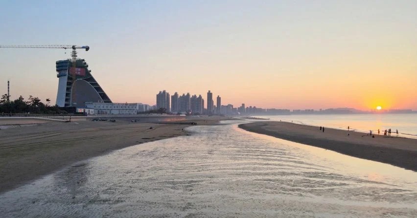 中国的开放建筑工作室(Open Architecture)在烟台公布了其50米高的观景塔的照片,该观景塔即将完工。