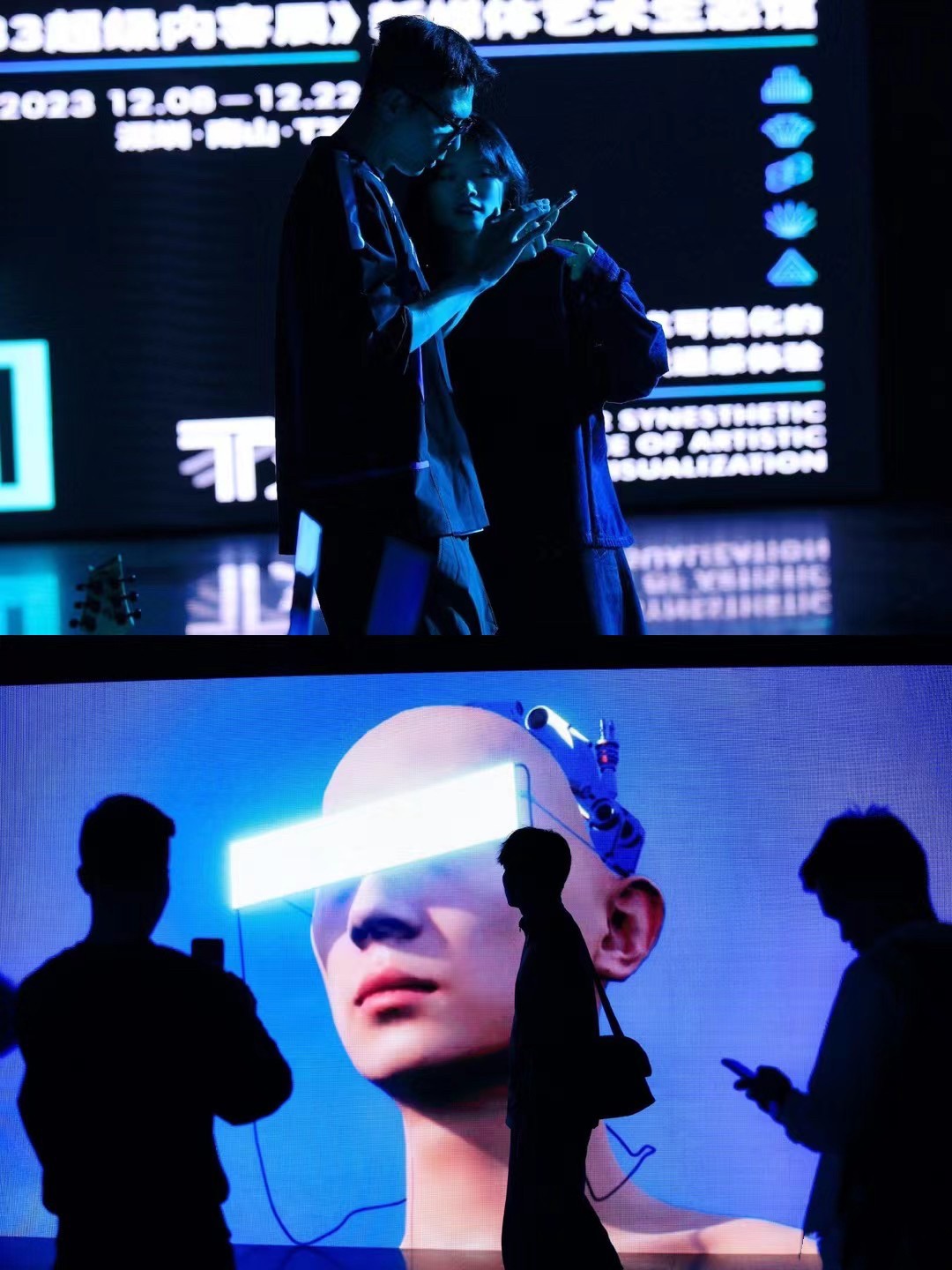 这种对艺术的创新使用,还体现在可视化的人文艺术上。去年年底,由T33发起的一场创意展览《超感公园·艺术可视》,让艺术实验突破场域限制。没有在展品前设置对观者的防护线、没有在展品旁的文字介绍板、也没有固定的参观动线和打卡点,从用与树共生的巨型雕塑、随时变化的数字艺术影像,到与音乐融合的视听艺术,处处呈展着创意、科技与自然的结合。