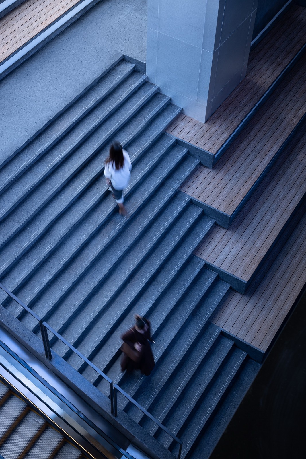 在竖向楼梯与各层的互连共通、电梯厅与核心筒的采光通风布置下,使其产生一个和谐自然、开门见绿的生态空间,仿佛置于一片盎然的城市绿洲中,这是在摩天大楼遍地开花的一线城市中极少觅得的稀缺场景。幕墙之外是那片“深圳蓝”的晴空,幕墙之内是日光下澈中的悠然绿色,互为掩映间的此刻,这才是人与自然关系的最佳表达。
