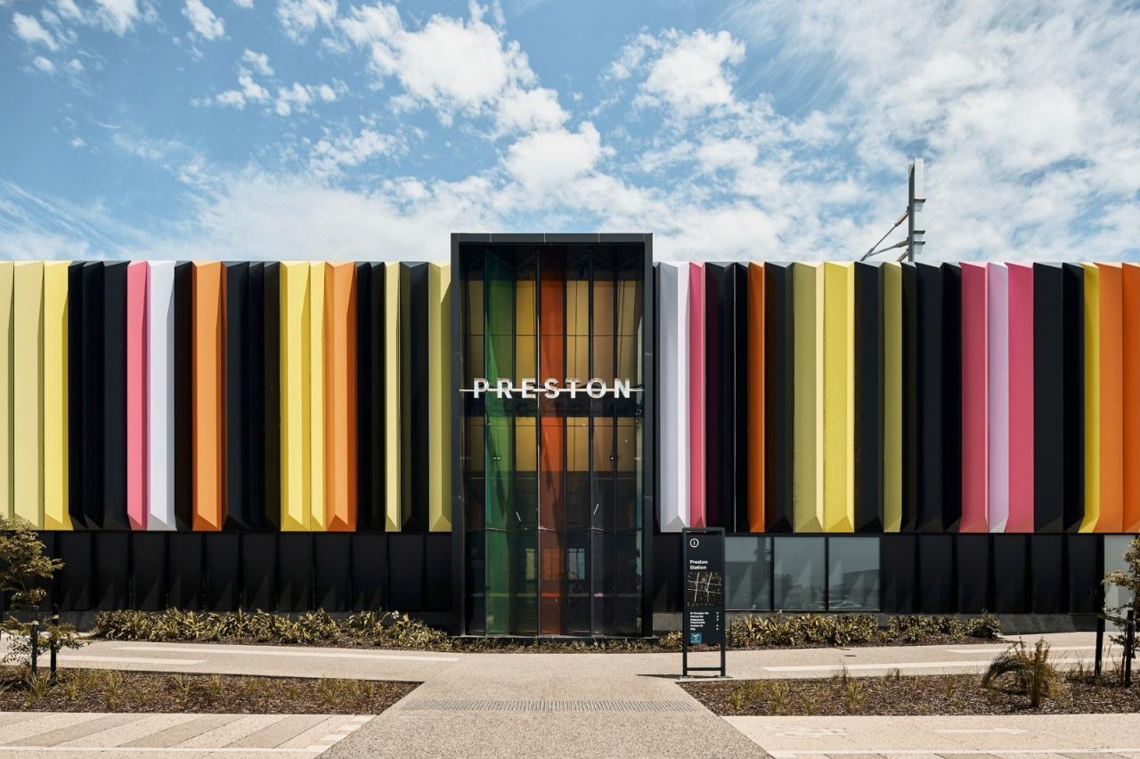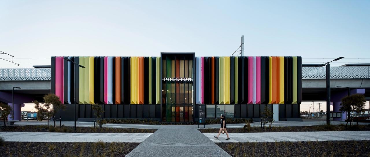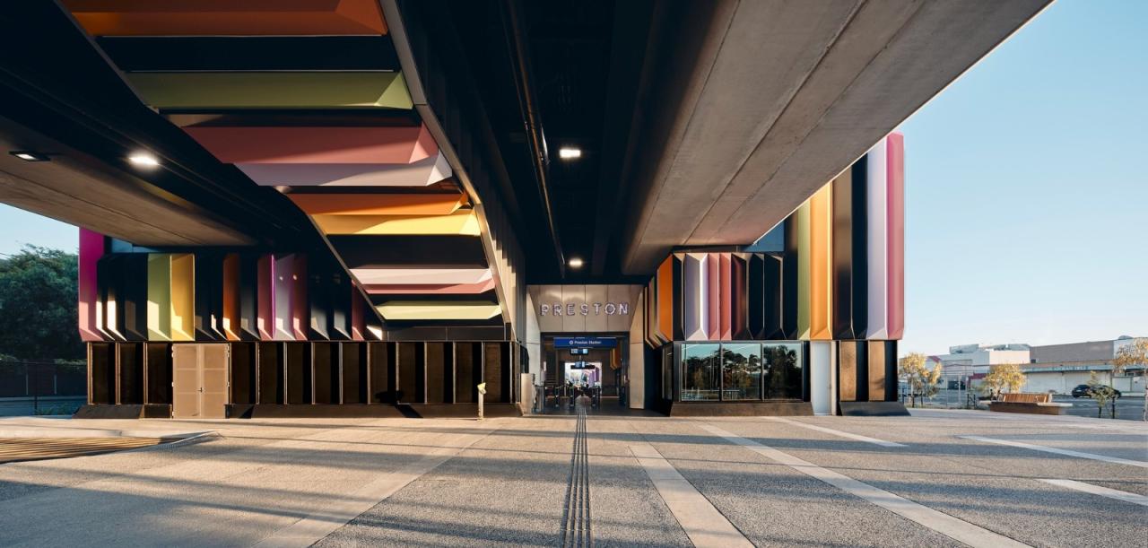 该项目以城市设计和市政区域为特色,包括绿色空间和原生种植场地,以促进和充当生态网络。车站周围和内部设施的增加提升了用户活动和活跃度。这种活跃性通过增加网络周围的被动监视来保证安全。用于公共设施的这些空间还提供了更方便地进入之前被铁路走廊阻挡的街道的流线。贝尔站和普雷斯顿站都纳入了土著设计倡议,以创造有意义和包容的空间。这些包括各种景观和城市设计元素,例如周围景观中的聊天圈空间以及两个车站的土著设计元素,如高架铁路屏幕图案和电梯图案。该项目促进了文化学习的机会,并作为一个功能性的社区空间。