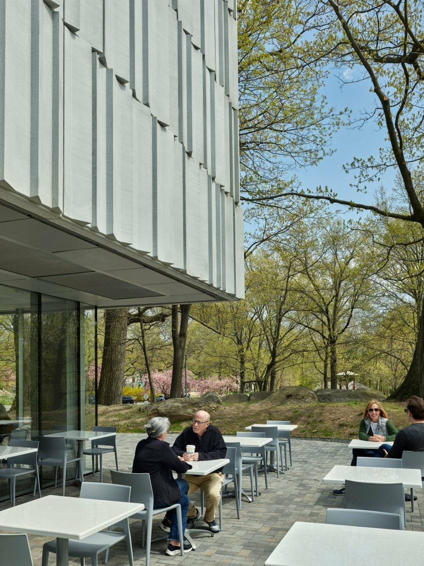 通过扩建,该工作室重新定位了博物馆的入口,使其远离附近的1-95,朝向邻近的布鲁斯公园(Bruce Park ),以获得更私密的体验。位于两座建筑之间的中央庭院旨在将它们从内部连接起来,并“扩展公园进入博物馆”。增加的部分有一个凹槽的石头立面,从周围的景观中汲取灵感,并提供自然采光。