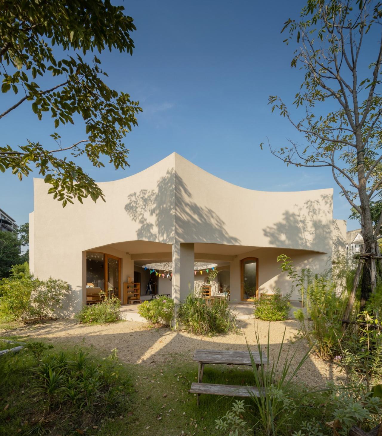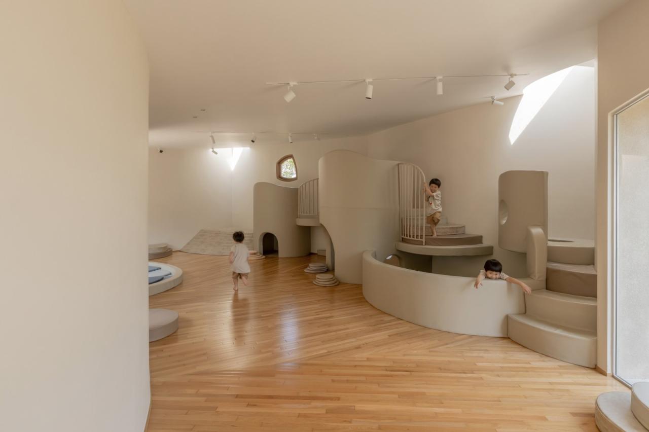 庭院连接了三个主要空间 – 接待区、工作室和游戏室。儿童可以在室内和室外之间自由奔跑,而父母始终可以看到他们,因为所有房间都可以视觉连接。游乐场将成为儿童扩展想象力、探索感官体验、通过游戏学习的场所。