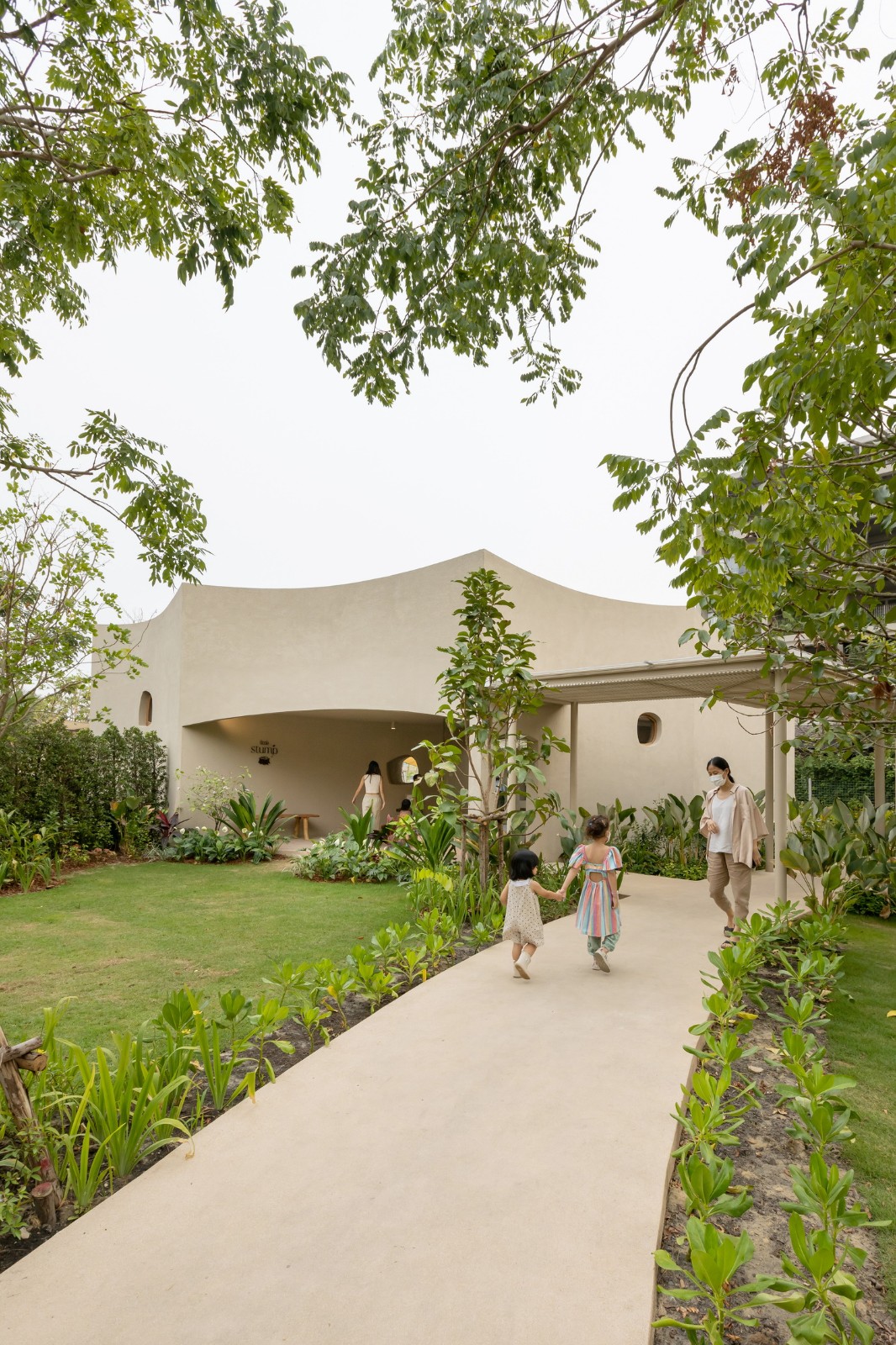 该设计与一本儿童书籍《树桩和朋友们》的制作同时进行,该书由 Saanaksorn 出版,并由 Littleblackoz Studio 绘制插图,旨在为儿童创造一个连接现实和想象世界的特定场所,供儿童学习、玩耍和探索。
