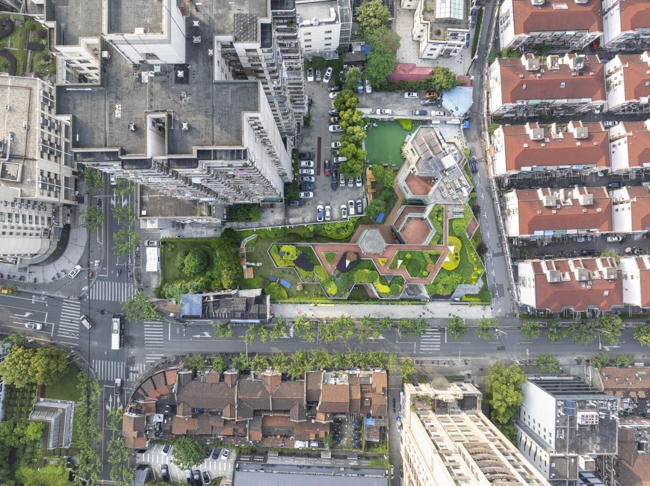 幼儿园位于静安区西北角梧桐树成荫的海防路,经过多年的城市变迁,老弄堂、多层小区,高层住宅和商铺在场地周边组合成一个具有极强拼贴既视感的城市界面,记录着历史与变迁。与余姚路幼儿园隔着一条海防路的是一组弄堂建筑。里弄是上海最具代表性的生活空间与公共空间。它们就好似一个个微型的社区拼贴,把生活,建筑与人浓缩在一起。