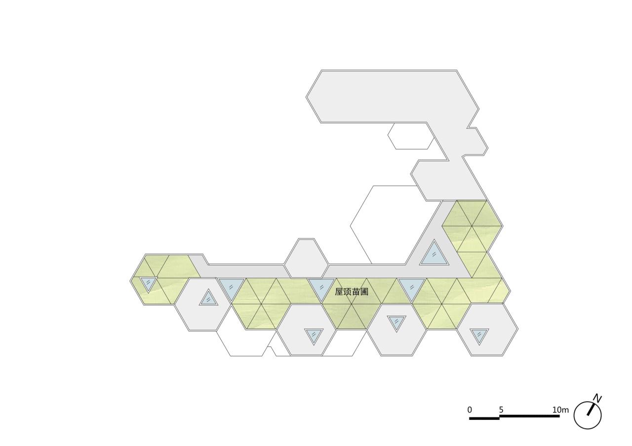 公共活动场地、分班活动场、屋顶苗圃,就是用这样的方式,穿插在建筑与景观之中。