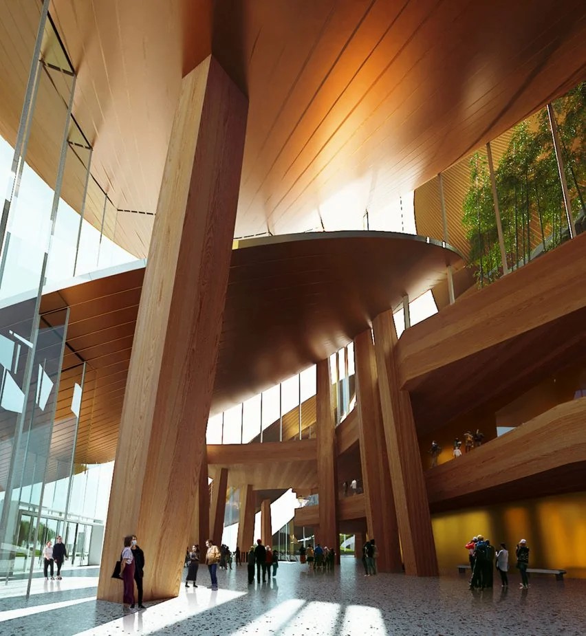 虽然建筑的弯曲形式在很大程度上参考了竹叶的形状,但它的设计也呼应了安吉周围种植茶叶的山丘的起伏地形。这个项目的内部将安排在重叠的金属屋顶下,并围绕分隔主要活动空间的中央走廊进行组织。马岩松建筑事务所将该中心设计为一个可访问的会议空间,可以随时从各个方向进入。马岩松建筑事务所说:“安吉文化艺术中心的最高点是一系列重叠的金属屋顶,类似于散落的竹叶和山脊,为令人惊叹的景观增加了视觉复杂性,”