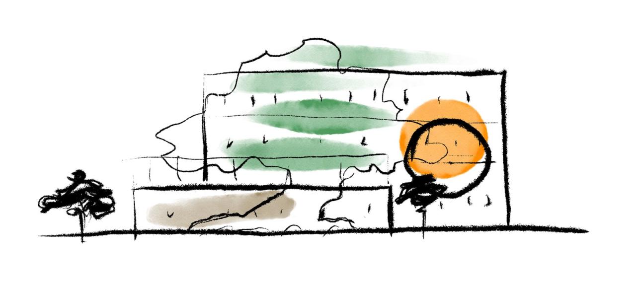 在紧张的设计周期压力下,我们力求避免对这些需求进行“头痛医头”式地逐一回应。由于待改造的室内空间都直接与外立面相接,我们决定以外立面改造的设计概念为叙事线索,来统合完成各处局部空间的设计。这样的设计策略大幅降低了前期沟通成本,让园方得以从宏观视角理解建筑师的设计意图,从而快速推进方案。