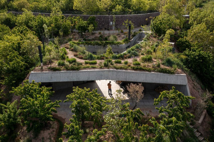 伊朗奥尔古建筑工作室(Olgoo)在德黑兰附近完成了一座地下度假屋,顶部是一个与周围景观融为一体的绿色屋顶。
