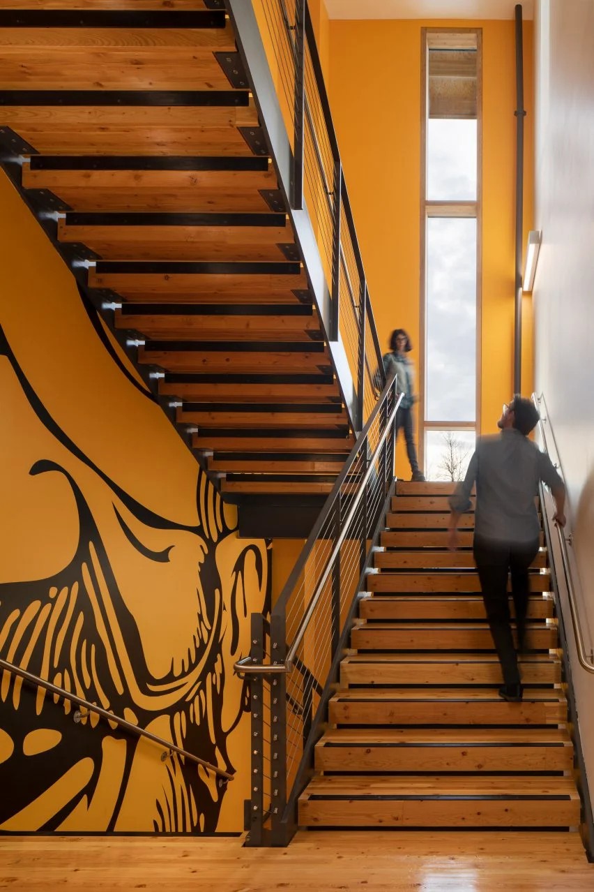 对于结构框架,设计团队使用了大量由花旗松制成的木材。组件包括胶合层压、交叉层压和榫钉层压木材。