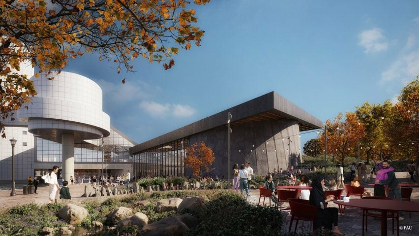 都市建筑工作室(PAU)从贝聿铭的设计中汲取灵感,设计了一座从主楼侧面向外延伸的楔形建筑,其最低点与原始建筑相接。一个巨大的中央中庭将融合两种形式交汇处的建筑内部。