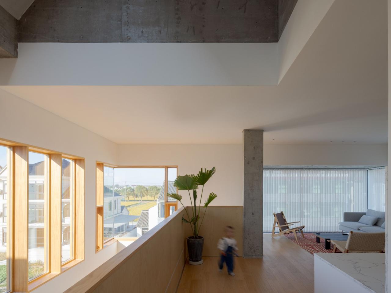 所以在空间的规划上,采纳了分区生活的方式:一个楼层一代人。每层除了设计独立卧室外,还会以小客厅、户外庭院、阳台等形式,配以独立的活动空间,以便去延续各自的生活习惯,会各自的朋友,打造各自舒适的环境挑空。