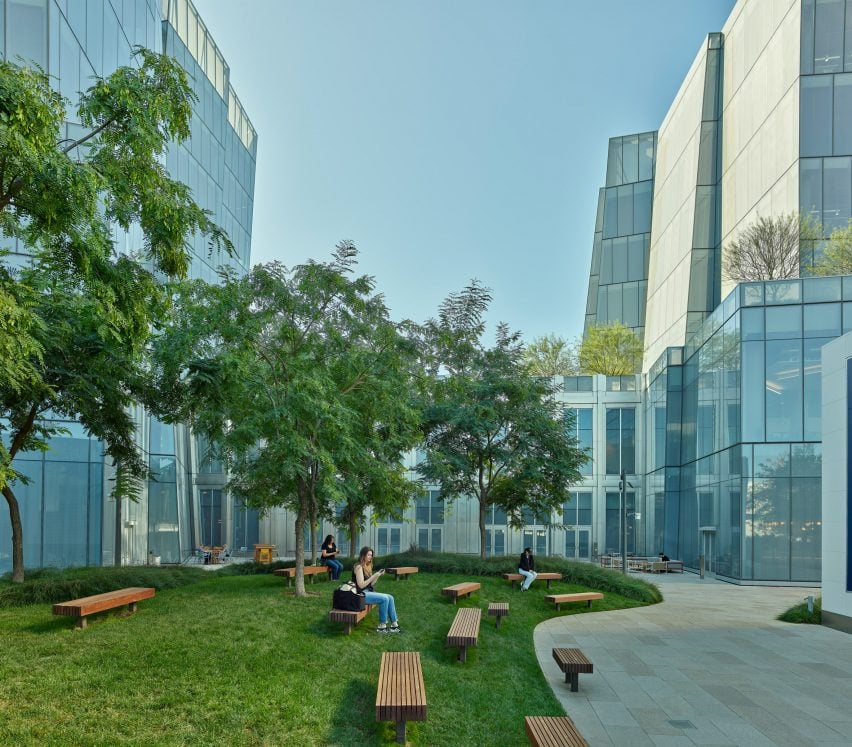 它继续说道:“经过精心设计,多面斜墙的运动和节奏是着眼于从行驶的汽车中如何感知它而设计的。”建筑的另一侧更倾向于行人,OJB景观建筑公司在建筑外直接设计了景观空间。这些小径蜿蜒穿过成熟的树木和灌木林。在室内,盖里合作伙伴将地板设计得灵活多样,以满足不同租户的需求。华纳兄弟公司与国际建筑工作室NBBJ签订了室内装修合同。