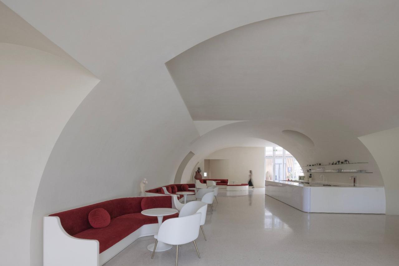 山洞和拱形大厅,山路和户外楼梯,太阳和玻璃圆窗,洞口和天光,膜结构和树荫,水渠和造景,海子和水池,沙滩和地面,悬崖和平台,自然被抽象后结合建筑部件形成一组组互文的文本,镶嵌成艺术中心和山这一组超级互文本。在文本的解读中发现历史,神话,记忆,自然,象征乃至谜语包括建筑的模式语言等等而可理解。