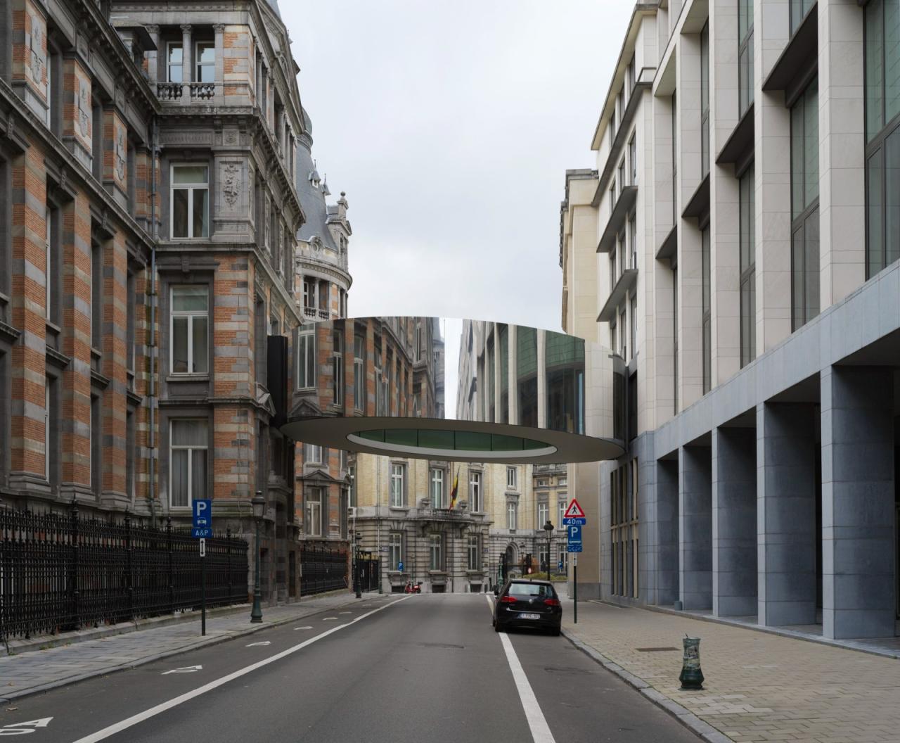 Tondo 是一座连接布鲁塞尔市中心比利时联邦议会两栋大楼的人行天桥。这座桥被明确作为一个空间元素,而非纯粹的技术解决方案。它这座桥呈环状,悬挂在两栋大楼之间,因此以 Tondo 命名,即文艺复兴时期的圆形绘画。