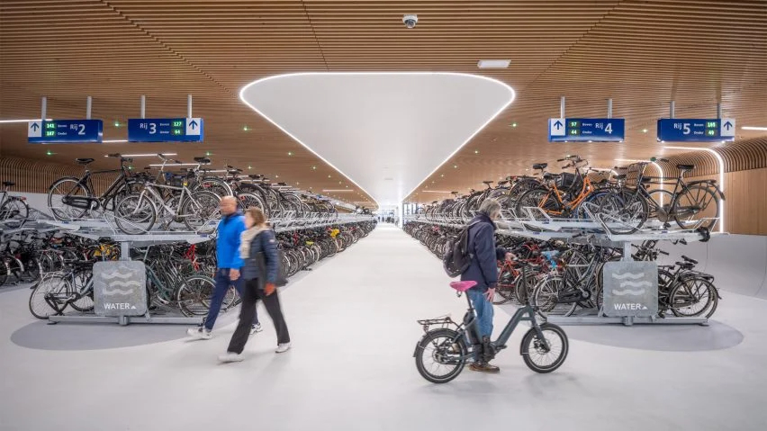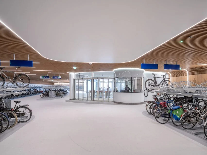 入口采用与林荫大道相同的深灰色天然石材,旨在提供内部和外部空间之间的无缝过渡。IJboulevard项目入围了Dezeen Awards奖的基础设施和交通项目类别。在阿姆斯特丹中央车站以南,荷兰Wurck工作室还为7000辆自行车建造了一个水下停车场,内部为光滑的白色。在荷兰其他地方,Ector Hoogstad Architecten 工作室在乌得勒支中央车站下方创建了世界上最大的自行车停车场,可容纳12656辆自行车。