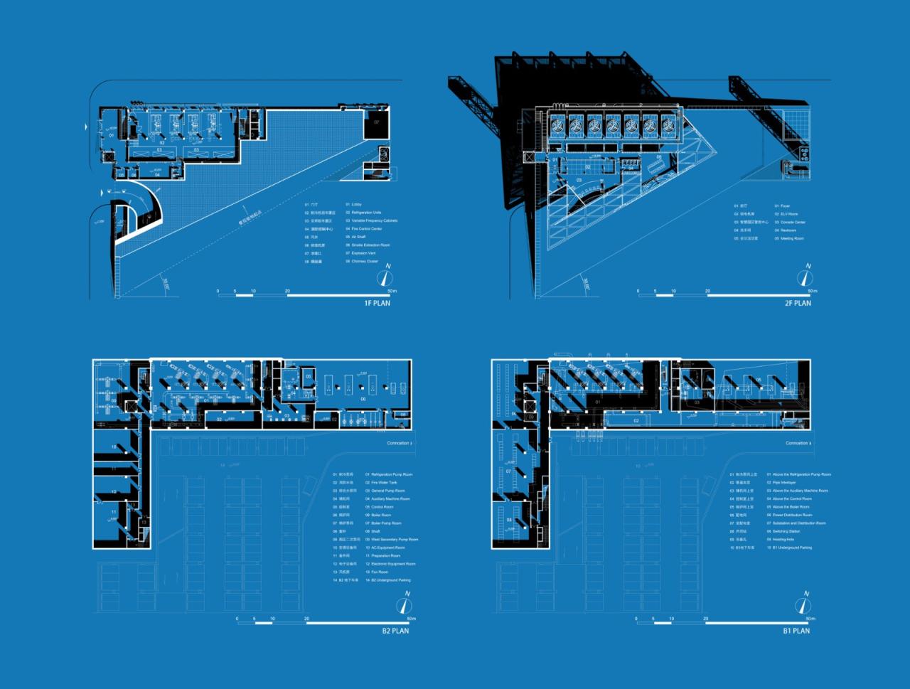 技术与美学。能源中心先有设备,再有建筑。经过测算,供冷设备为3座2200RT和1座1100RT变频离心式制冷机组,搭配7台大型冷却塔;供热为三台5.6MW燃气热水锅炉;生活热水则为两台1.4MW燃气热水锅炉,等等。技术参数作为构建空间设计的基本常量。