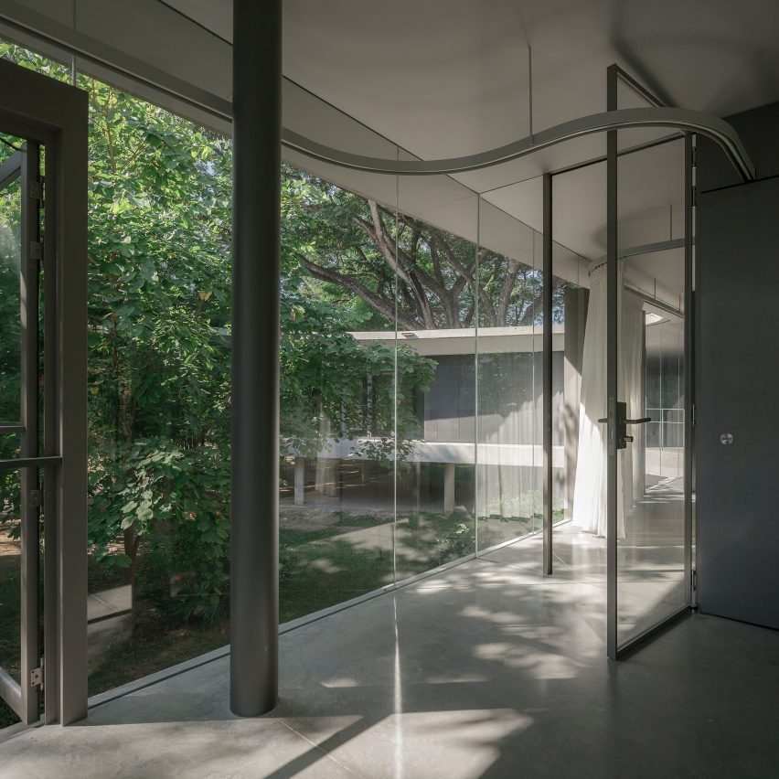 在内部,“雨树”继续反映了当地河边房屋的空间类型,每个公寓都被视为一个单独的盒装住宅。每间公寓的后面都有附属空间,卧室和生活空间位于玻璃区的每个侧翼的末端,最大限度地利用自然光和河流边缘的景色。All(zone)是由泰国建筑师拉查蓬-乔楚伊(Rachaporn Choochuey)领导的曼谷工作室。