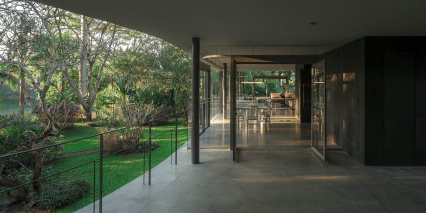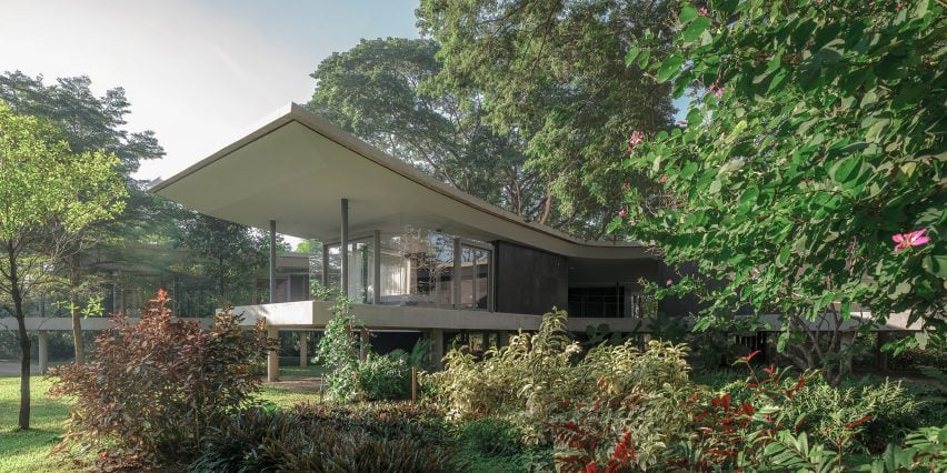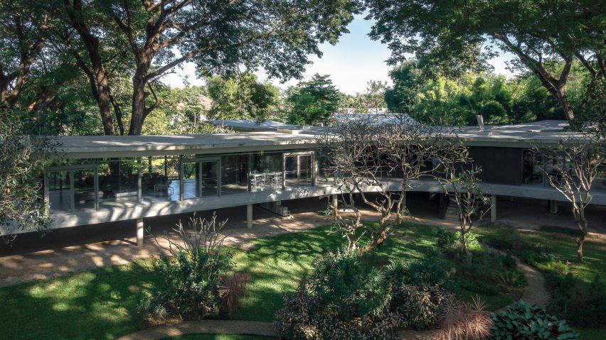All(zone)工作室说:“树荫为生活创造了近乎完美的气候条件。地面基本上没有受到影响,野生植被与房屋融为一体。”该建筑展现了热带现代主义的特征,其形式让人想起建筑师丽娜-柏-巴迪(Lina Bo Bardi) 的玻璃屋(Glass House)和建筑师奥斯卡-尼迈耶(Oscar Niemeyer)的独木舟之家(Casa Das Canoas )等作品。