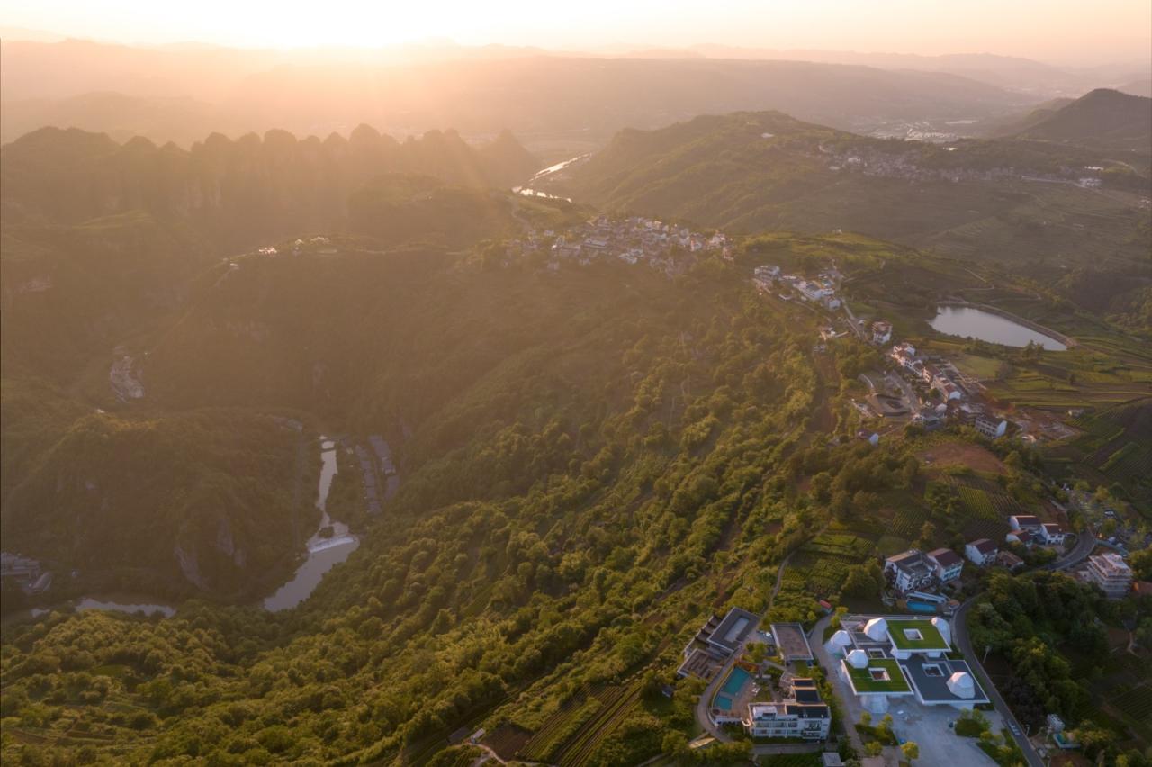 另一方面,“云峰十二重”以极具差异化的形象气质为乡村带来了新的流量。比平面化的图像展示更重要的是,场所与环境所营造出的空间知觉和身体性记忆——当现代异质感与自然乡土并置冲突的同时,轻柔温润的外表皮又映射融入云海晚霞中,独特的环境张力转化为真实的知觉感受与印象,为村民的日常性劳作或游客的非日常旅程,都增添了一段关于此时此地的难忘记忆。