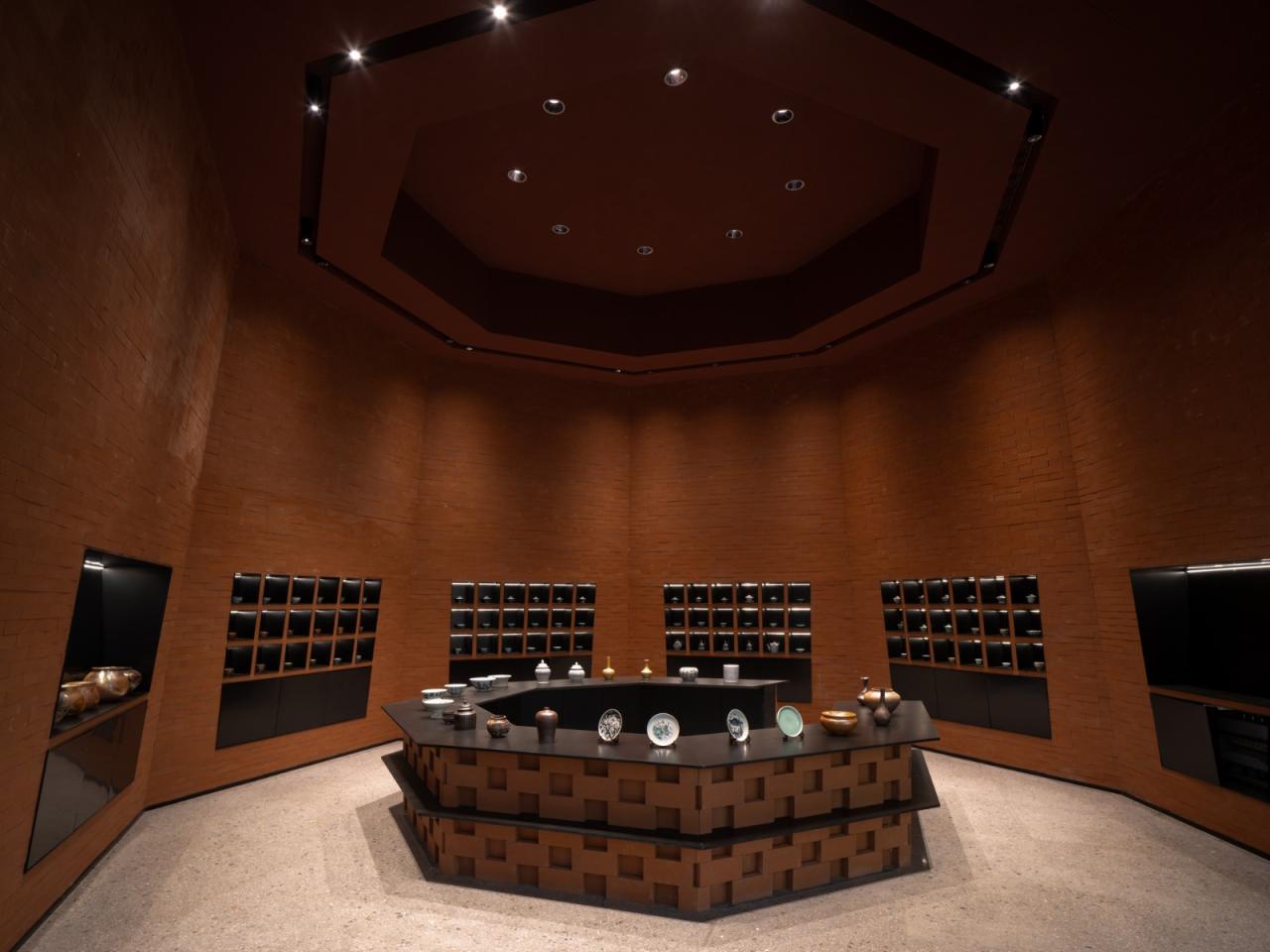 “云峰十二重”的平面布局以散点聚落的方式,强调通过性,建筑与环境、室内与室外互相渗透。首层十二个单元分组团不等距地围合排布,单体的开口朝向中心,对外形成统一完整的纯粹界面,对内则面向中心院落形成丰富的展示面和开口,由空间的具体内容赋予一系列相似的单体以独特性。