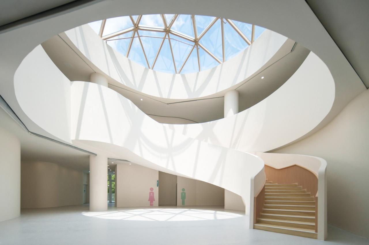 学校的大体量单体建筑与北侧香樟林形成了北轴,降低了城市道路对于校园内部的噪音干扰,也形成了简约的校园空间天际线。分层的建筑退台增加了校内外空间的对话。位于小学部地块的艺术中心通过集约化设计,融合了剧场、教室、餐厅等多种功能。位于中学部的体育中心是学校最大的单体建筑,地面、二层、三层均可进入,提供丰富的体育功能,位于东北角的趣味滑梯可直达地面,为大体量建筑带来亲和友好的体验。