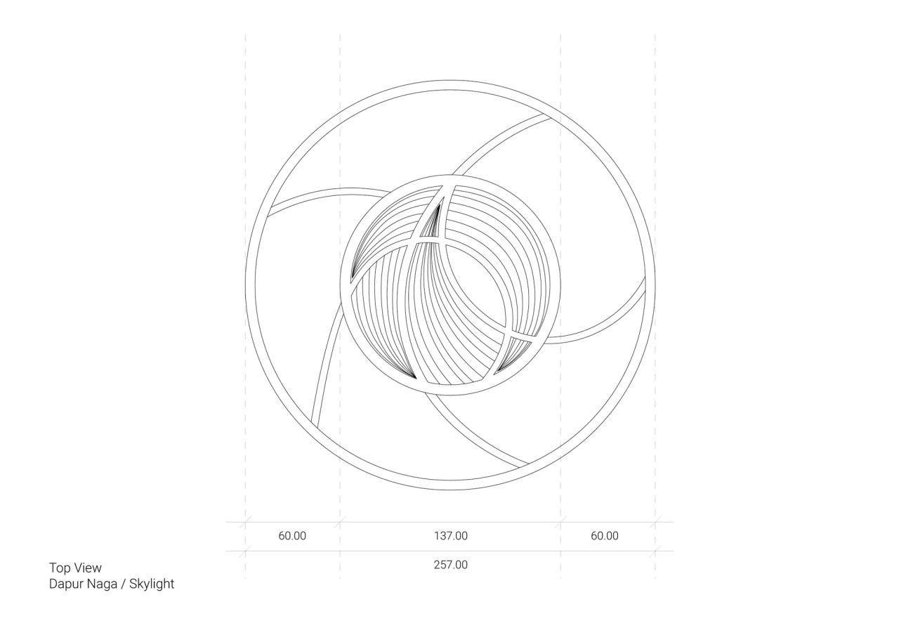 达普尔·纳加是一个位于巴厘岛郁郁葱葱的热带环境中的竹制建筑设计实验空间。这一独特的建筑既是一个公共厨房,也是一个用餐空间,能够容纳 50 多人。项目所在场地坡度较大,存在三个主要的高度差,同时业主有着希望设计能与自然环境无缝融合的诉求。达普尔·纳加的主要设计理念灵感来源于旋转的苏菲裙摆的优雅形态,其流动性引导了建筑波浪形屋顶的发展。屋顶是一个双曲面,精心打造以捕捉迷人景观,同时促进自然通风。这种有机形态在屋顶下创造了一个开放而迷人的空间。