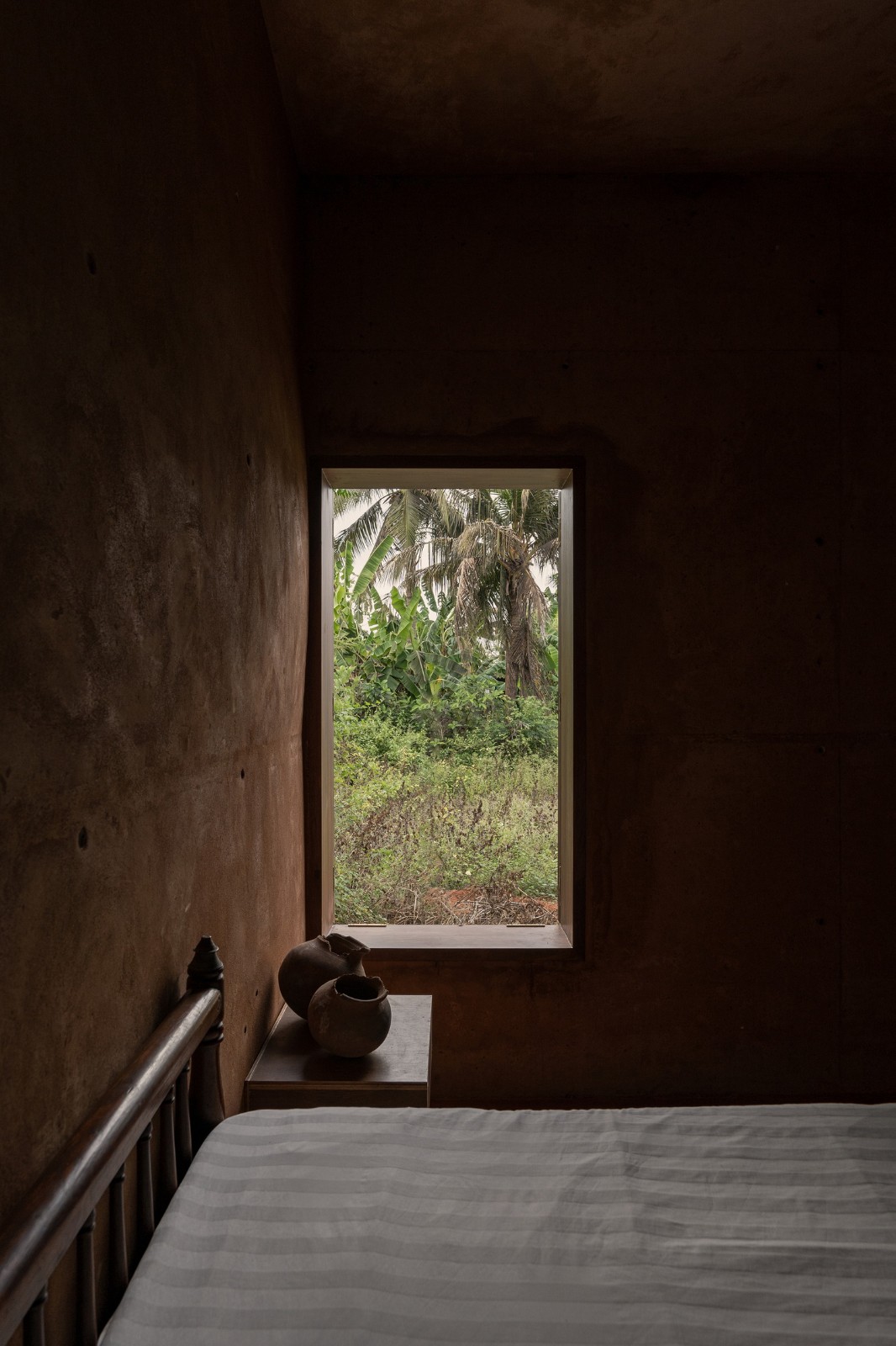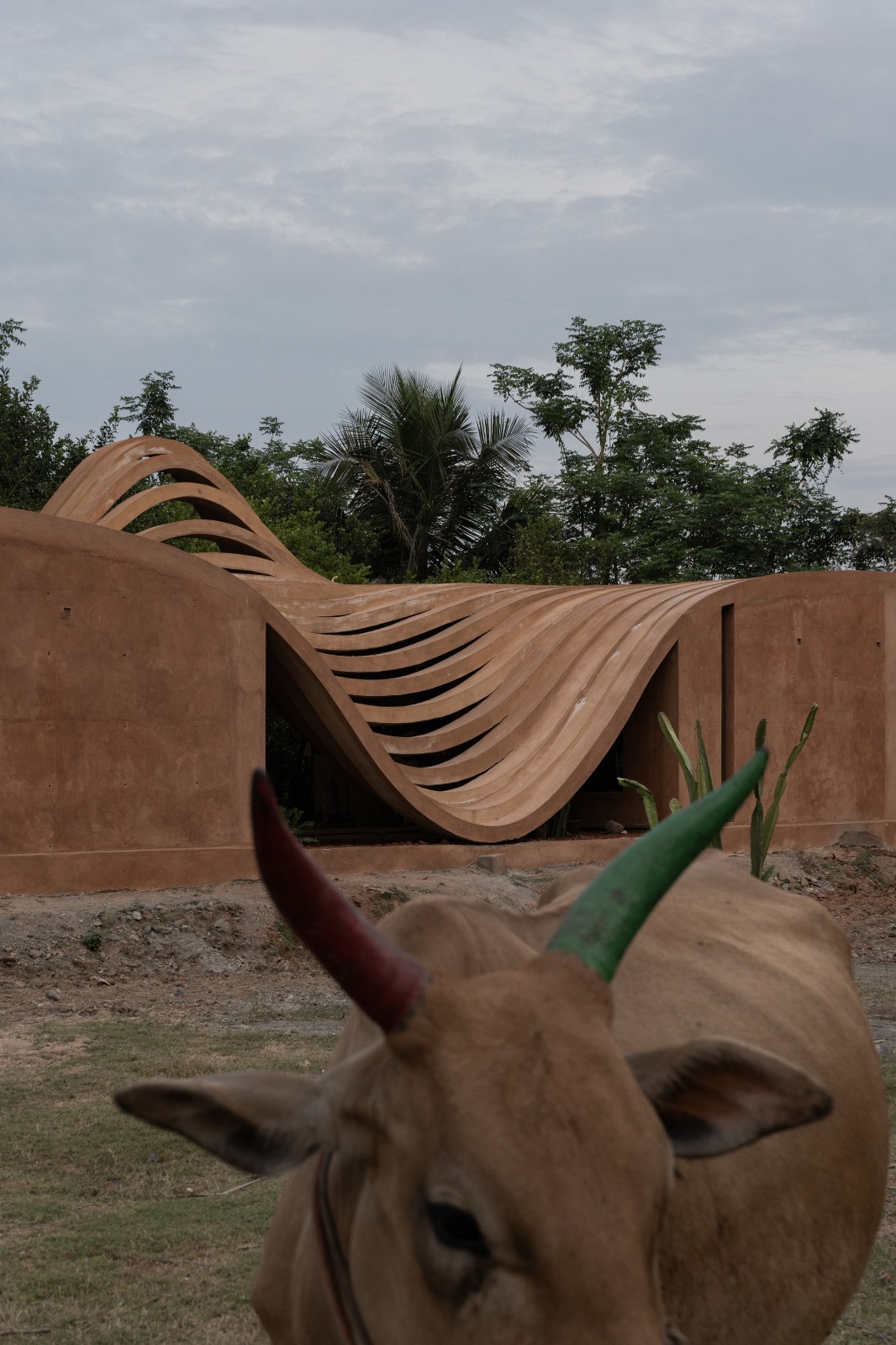 在该项目中,包含 thinnai(门廊)、客厅和庭院的公共空间,以及更为私密的厨房和卧室,被线性排列,使得每个空间在视觉上都是相连的。房子的核心是庭院。一道墙蜿蜒穿过庭院的空间,为西侧遮挡了刺眼的阳光。
