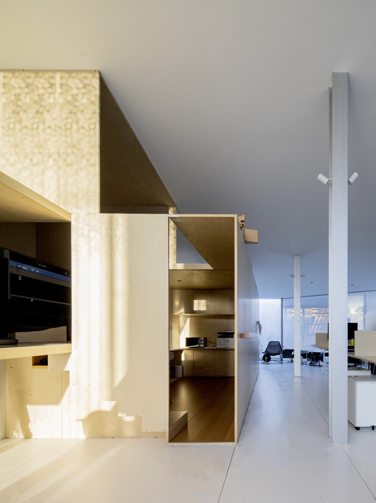 这是一个改造设计,既老旧又充满不确定性的环境成为设计方重新设计这个办公室的起点,在遵循原有建筑的外形尺寸和体积的前提下,由内而外地思考如何做出一个更适合设计师工作特性的工作场所,为团队的成员带来美好且优雅的工作状态。陶磊建筑的初衷是:简单,舒适,小巧但优雅,并且尽可能的能和自然接触,虽然它周围并没有很好的自然资源。