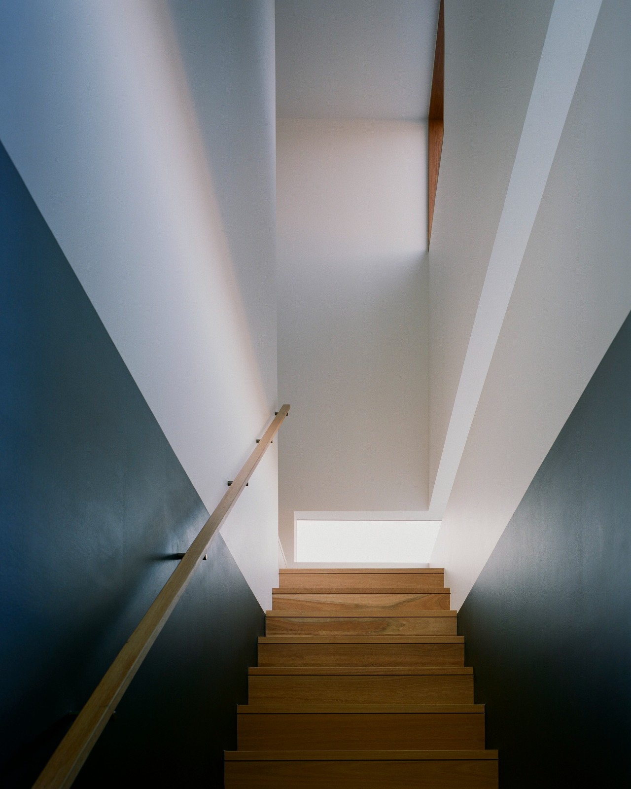 上部体量包含私人区域,所有卧室都位于该层;下方一个体量用于车库,另一个则为生活空间。该小地块的严格高度和侧边界限制通过矩形的两层结构得到了有效解决。然而,设计通过在每个体量之间建立视觉上的分隔,打破了传统的两层结构形式,使得上部体量仿佛悬浮在下面两侧的体量之上。这种设计不仅遵循了规定的限制,还减轻了建筑的体量感和规模感,使其能够与周围环境和谐融合,并在场地内呈现出平衡、匀称的存在感。